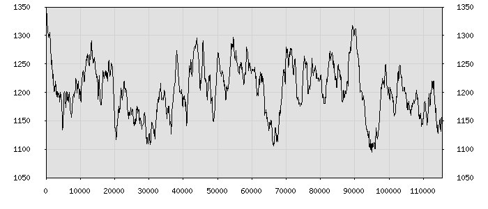 (по горизонтали: счётчик знаков; по вертикали: процент диалогов; размер скользящего окна: знаков, шаг: 1000 знаков) |
