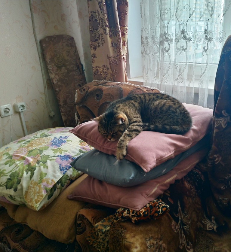 Попыталась спать на вершине. Оказалось неудобно, милостиво приняла приглашение перейти на диван.