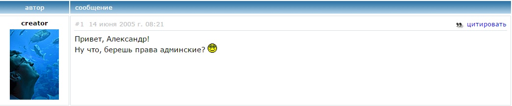 Ах какое это было время, ребята! Все мы чувствовали себя первооткрывателями, мы обсуждали, придумывали, фантазировали и строили планы на будущее на НАШЕМ САЙТЕ. Думаю, скажу правду за всех, мы кайфовали! Это было золотое время...