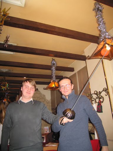 цитата iwan-san, еще не пришедший в чувствоСидим мы с Kons'ом честно наблюдаем за премией (он записывает, я фотографирую)... Злотников вручил премию «Меч без имени» какому-то товарищу, потом Звягинцев вручил «Лунный меч» за прошлый год Марине Дяченко, потом вышел Ютанов и начал что-то говорить про премию «Рыцарь фантастики», которую они вручают интернет-проекту (тут мы с Kons'ом переглянулись и прикололись: «типа нам») и тут объявляют, что лауреатом стал проект «Лаборатория Фантастики»... мы подофигели, вышли на сцену, нам вручили меч (на самом деле что-то вроде испанской шпаги)... Андрей что-то умное проговорил в микрофон, что мы только питерский филиал Большого Фантлаба — «что это такое — узнаете завтра на презентации», я что-то сказал не помню что и мы спустились со сцены...