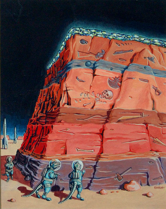 Надо сказать, что Эмшвиллер никогда не был чужд абстракционизму в искусстве, образцы его студенческих художественных работ ясно показывают его мировосприятие, а в андеграундном малобюджетном кино это стало еще более выпукло. Впрочем, работая иллюстратором для журналов фантастики, он и там иногда позволял себе выходить за рамки фантастического реализма: