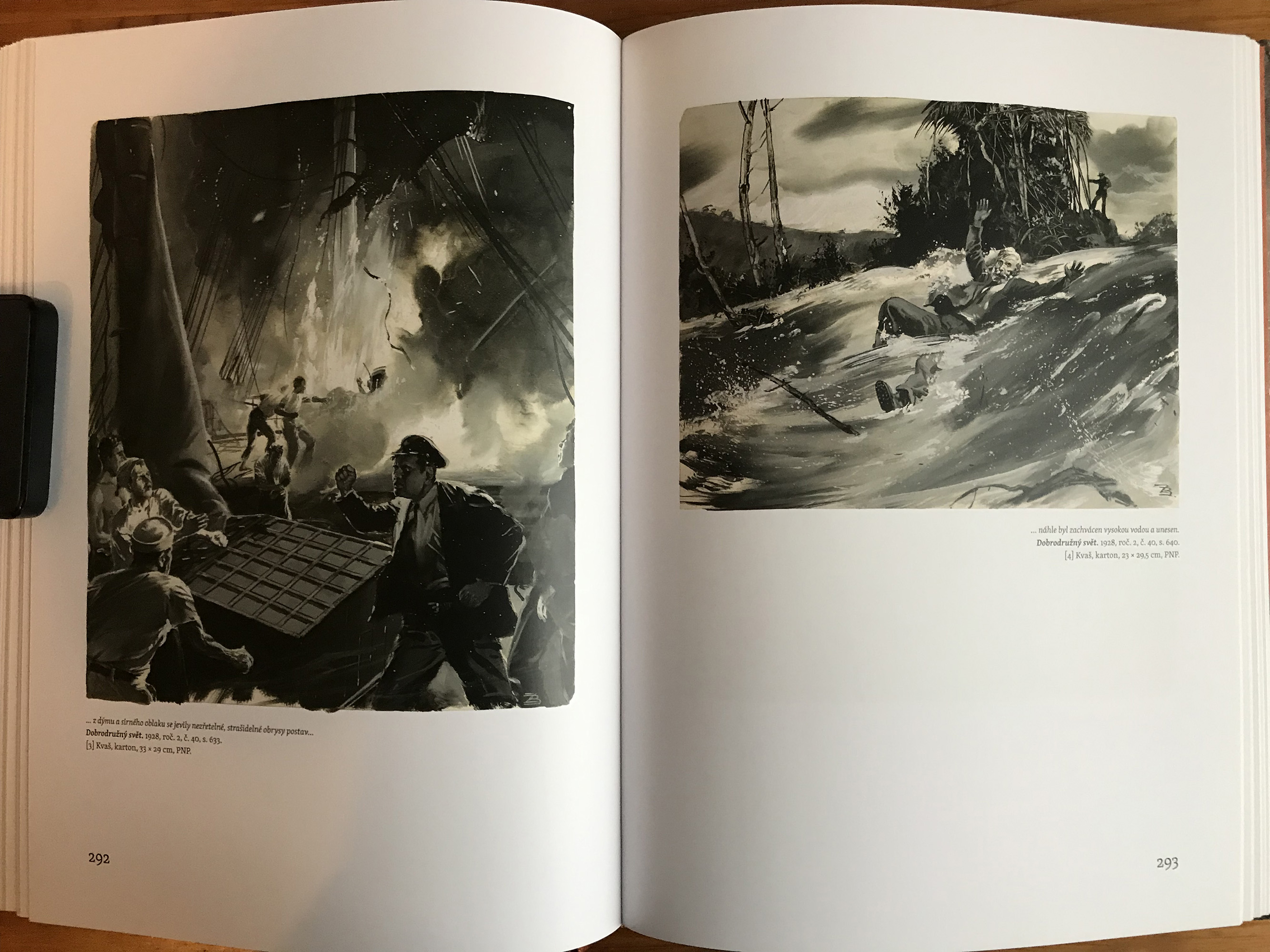 В 2018 году вышел альбом "Dobrodružný svět", в котором подробно рассказано о том периоде творчества художника, когда он плотно сотрудничал с журналом "Dobrodružný svět" ("Мир приключений"), издававшимся в 1920-1930-ые годы издателем Рихардом Вилимеком. Многие из этих иллюстраций потом были изданы в книгах, но впервые увидели свет они именно в журнале. А только что, буквально месяц назад, вышел альбом "Podivuhodný svět", в котором рассказывается о иллюстрациях Зденека Буриана к произведениям Жюля Верна. Я мимо таких вещей спокойно проходить не могу, и, конечно, приобрел первый альбом еще в прошлом году, а второй приехал ко мне буквально несколько дней назад. Обещали еще третий такой альбом, наверное, он выйдет в следующем году. Буду ждать.