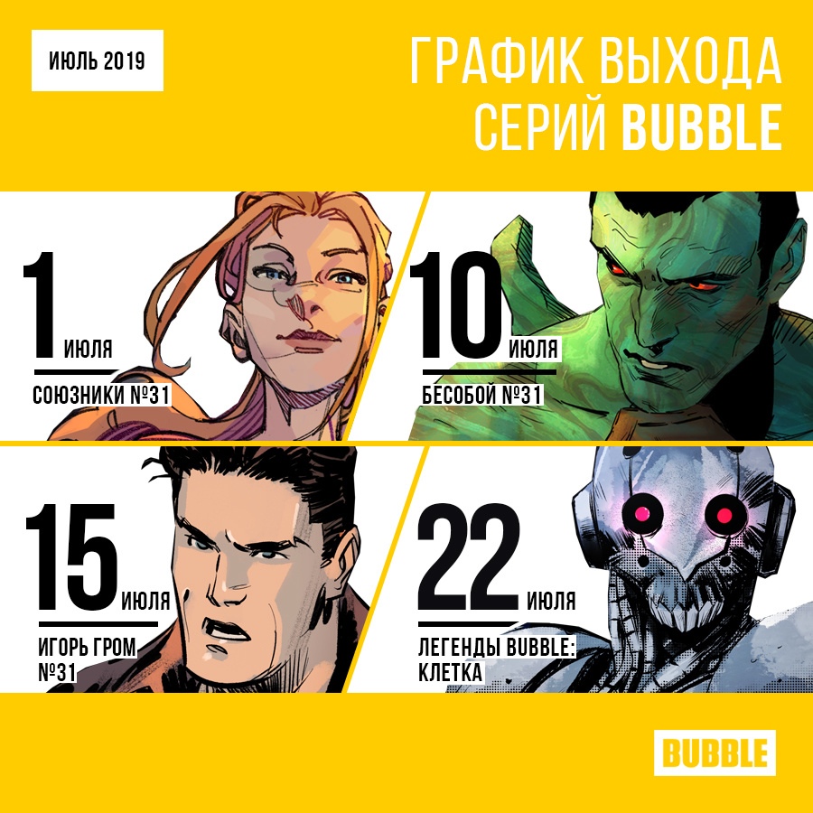 Издательство BUBBLE знакомит с графиком выхода комиксов в июле.