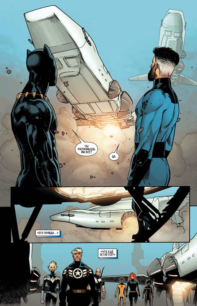 В сборник вошли комиксы Avengers (2012) #40-44 и New Avengers (2013) #29-33 сценариста Джонатана Хикмана и художников Стефано Казелли, Майка Деодато, Кева Уокера, Далибора Талажича и Майка Мэйхью. Мягкий переплет, 280 страниц, цена — от 550 рублей.