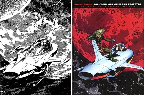 Справа — иллюстрация Франка Фразетты к Баку Роджерсу, выпуск за ноябрь 1954 года, в библиографии Фразетты фигурирует под названием "Famous Funnies #214 cover art". https://www.comics.org/issue/128492/