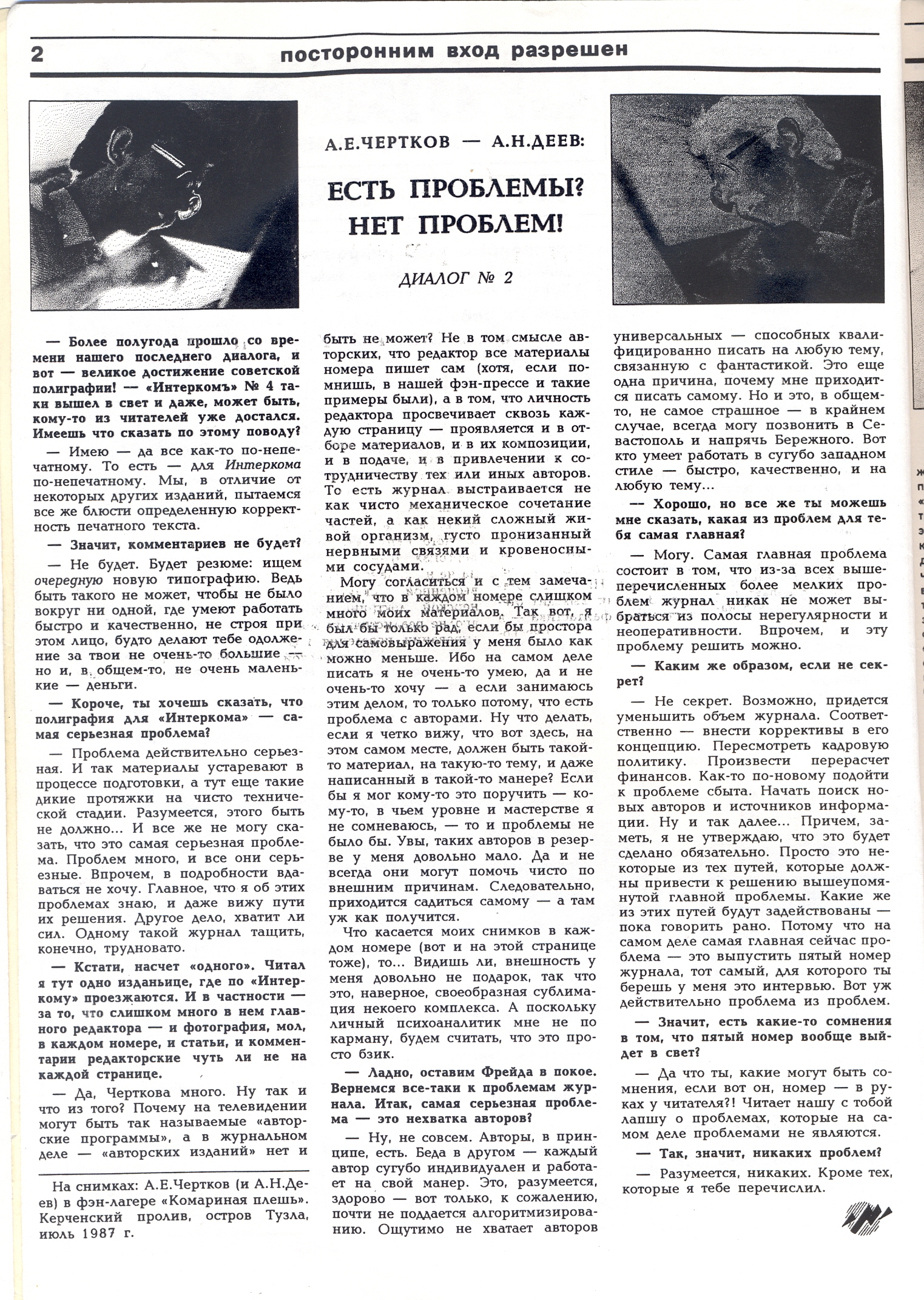 | Вы здесь: Авторские колонки FantLab > Авторская колонка «chert999» > 03. Интеркомъ, 1994, №5 - Вступительное интервью |