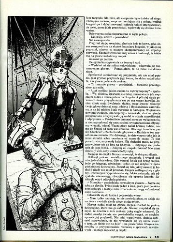 2. Рассказ американского писателя Кордвайнера Смита/Cordwainer Smith, который называется в оригинале “A Planet Named Shayol” (1961, “Galaxy”, 10; 1964, ант. “The Best of Sci-Fi 2”; 1968, авт. сб. “Space Lords”) перевел на польский язык под названием “Planeta o nazwie Shayol/Планета, называемая Шеол” КШИШТОФ ОБЛУЦКИЙ/Krzysztof Obłucki (стр. 11 – 16, 25 – 34, 36). Иллюстрации РОБЕРТА ШМИГЕЛЯ/Robert Szmigiel.