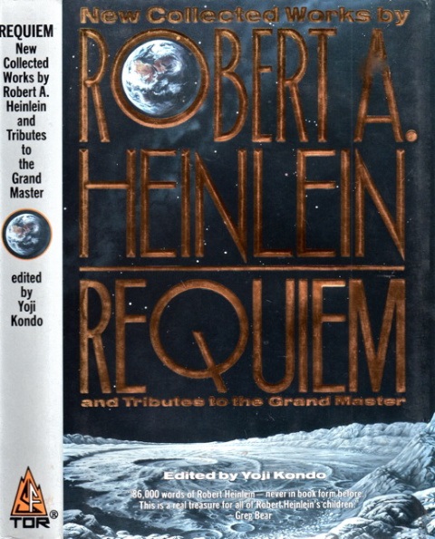 О сборнике «Реквием» — совсем коротко. Полное его оригинальное название — Requiem: New Collected Works by Robert A. Heinlein and Tributes to the Grand Master. Первое издание было в 1992 году в TOR Books. Как следует из названия, это было мемориальное издание, в которое, помимо нескольких редких рассказов, эссе и стихотворения Хайнлайна («86 000 слов Роберта Хайнлайна, ранее никогда не публиковавшихся в книжном формате», как обещал блёрб на обложке), предваряемых эссе-реквиемом Вирджинии Хайнлайн и вступлением редактора издания Ёдзи Кондо (американского астрофизика японского происхождения и писателя-фантаста), вошёл ещё большой раздел с публичными выступлениями писателя, а также эссе, написанных о нём коллегами по цеху. В сборнике были опубликованы тексты Роберта Силверберга, Пола Андерсона, Ларри Нивена, Грега Бира, Артура Кларка и других. В том собрания сочинений в серии «Звёзды мировой фантастики» эта часть сборника не вошла, поскольку, если делать подобное издание, то за рамками собрания сочинений автора. О каждом произведении сборника, включённом в том, в комментариях подробно рассказа С. В. Голд, так что останавливаться на этих отдельных работах не будем: всё самое интересное пусть будет в книге.