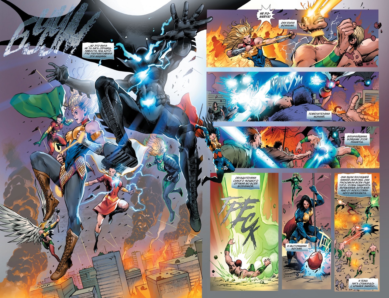 цитатаКонец света оказался лишь началом новой истории для героев, оставшихся в живых после того, как вирус Анти-Жизни, занесённый Дарксайдом на Землю через Киборга, опустошил планету. В комиксе сценариста Тома Тэйлора и художника Тревора Хэйрсайна («Красный Колпак и Изгои») «Заражение. Мёртвая планета» даже смерть целого мира не финал для выживших беглецов с Земли. Книга уже в печати!