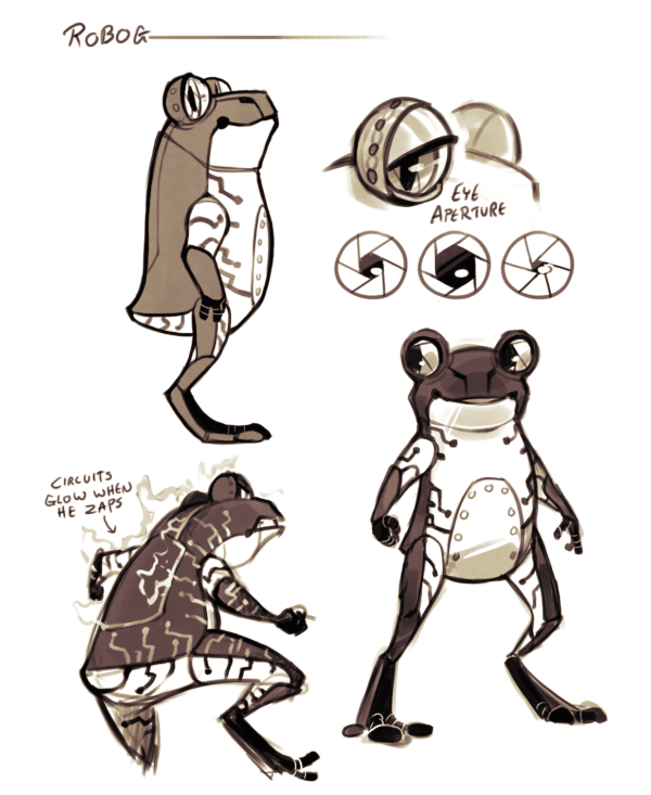 В 2019 году мой сын Оливер подарил мне рисунок Робогушки — наполовину робота, наполовину лягушки. Я повесил его на зеркало и смотрел на него каждый день в течение нескольких месяцев. Super Awesome Danger началась как история о Робогушке и переросла в сказку о двух братьях, которые вместе разрабатывают видеоигру, а затем один из них оказывается в ней заперт.