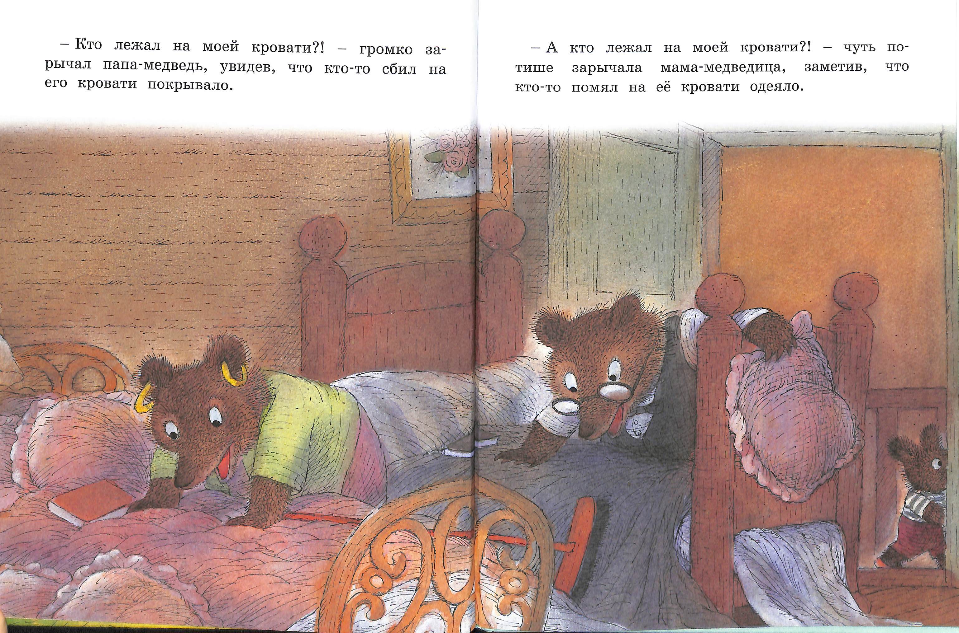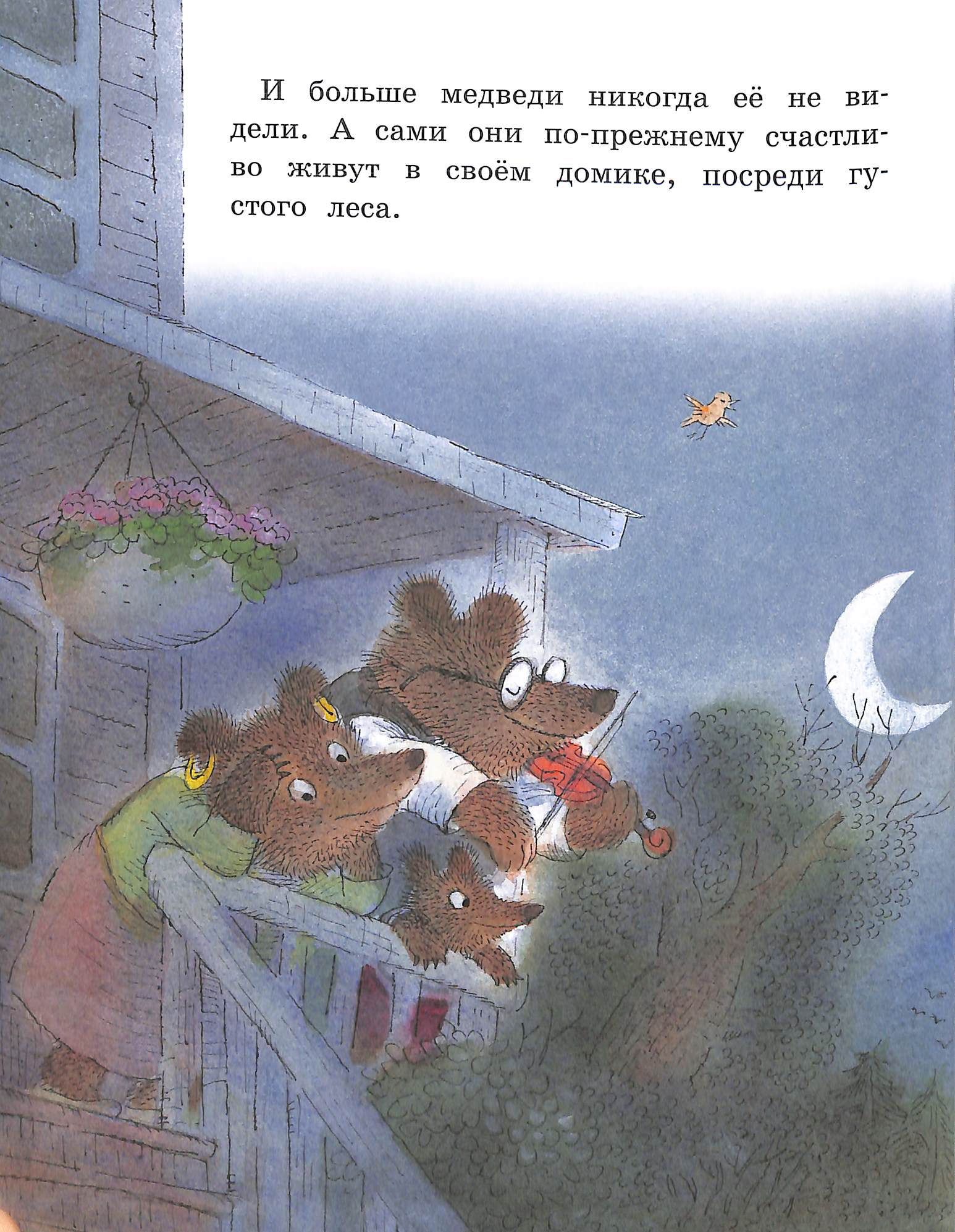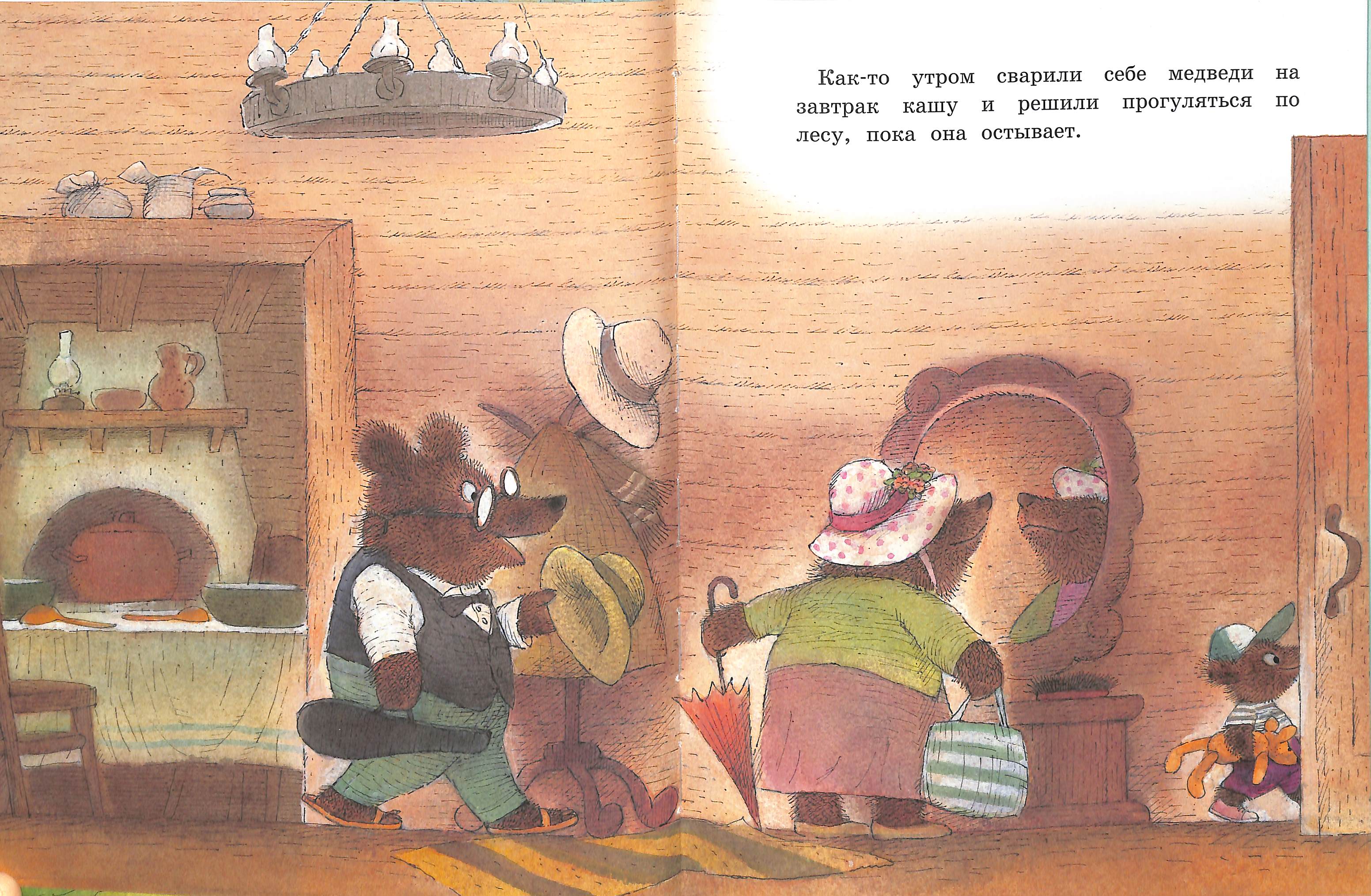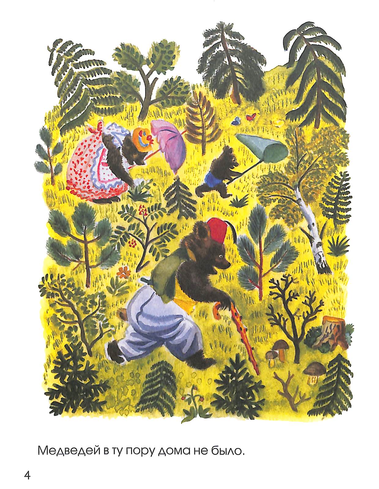 Русские иллюстраторы текста Льва Толстого обречены на пребывание в заколдованном круге. Медведи у них — всегда крестьяне: бедные или богатые, социализированные или дикие, обуржуазившиеся или опростившиеся. Девочка — тоже всегда крестьянка, совсем голодная и неразвитая либо слегка голодная и недоразвитая. Но ведь давно уже нет тёмного русского крестьянства, никто уже не понимает, какими должны быть отношения в этой среде. Лев Толстой понимал.