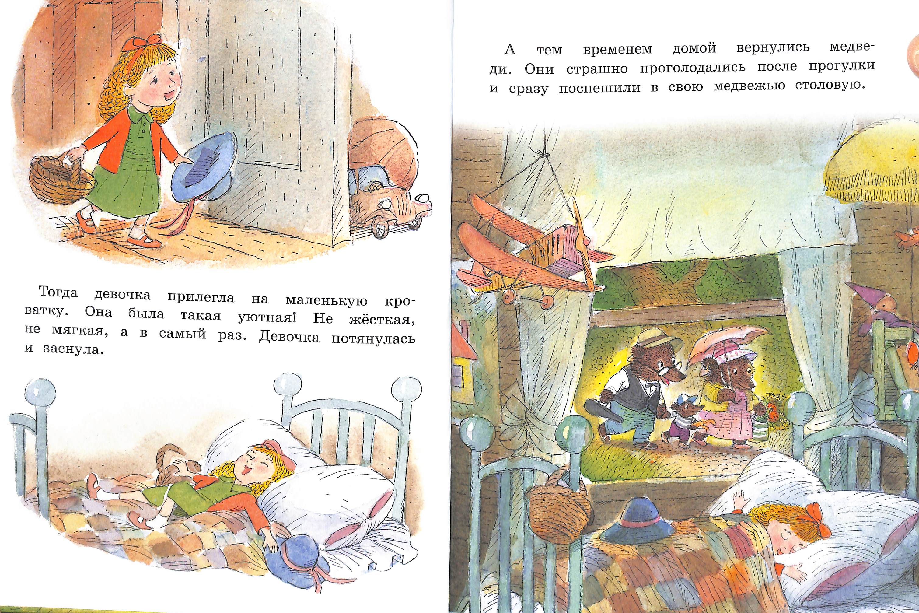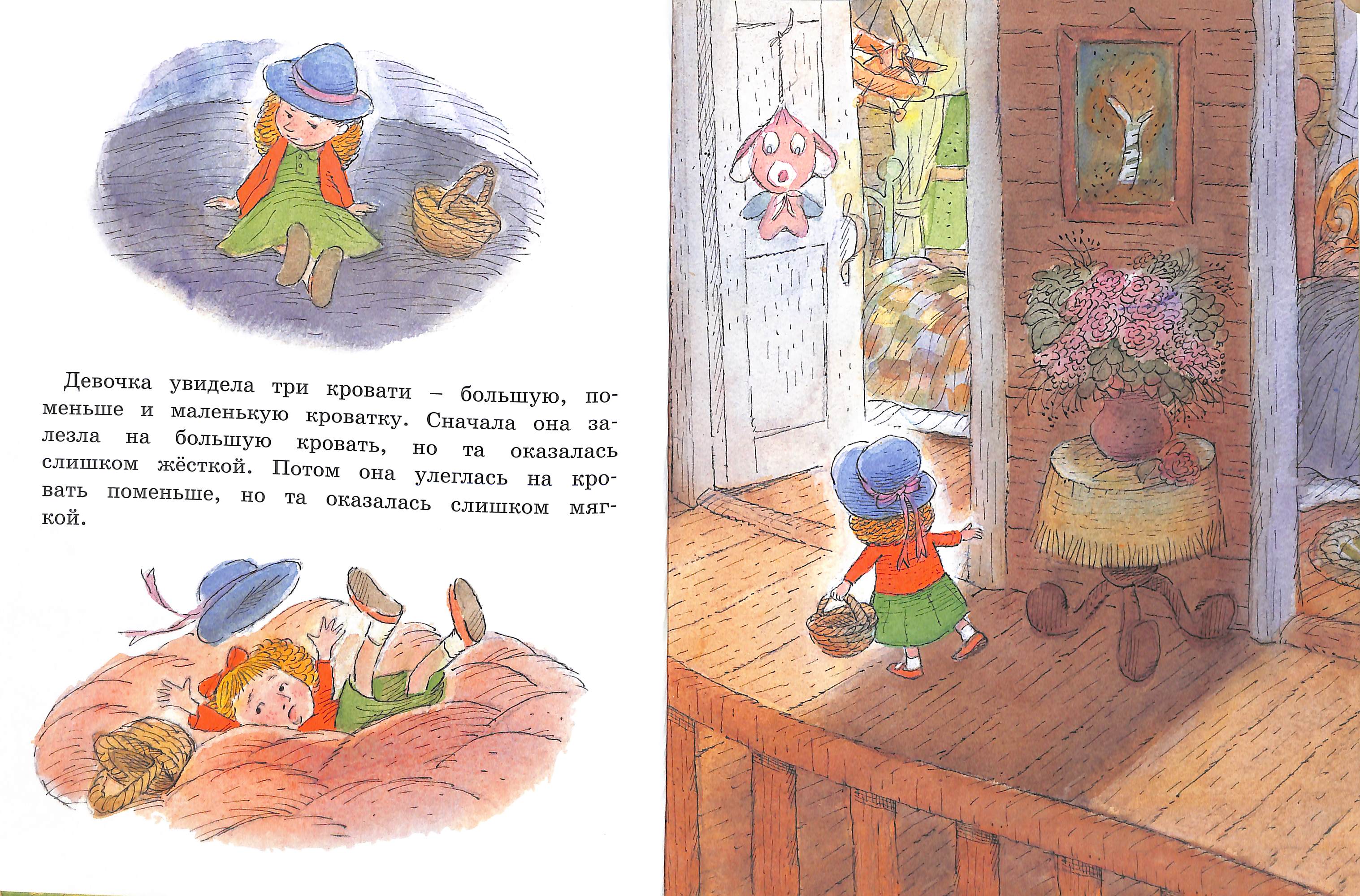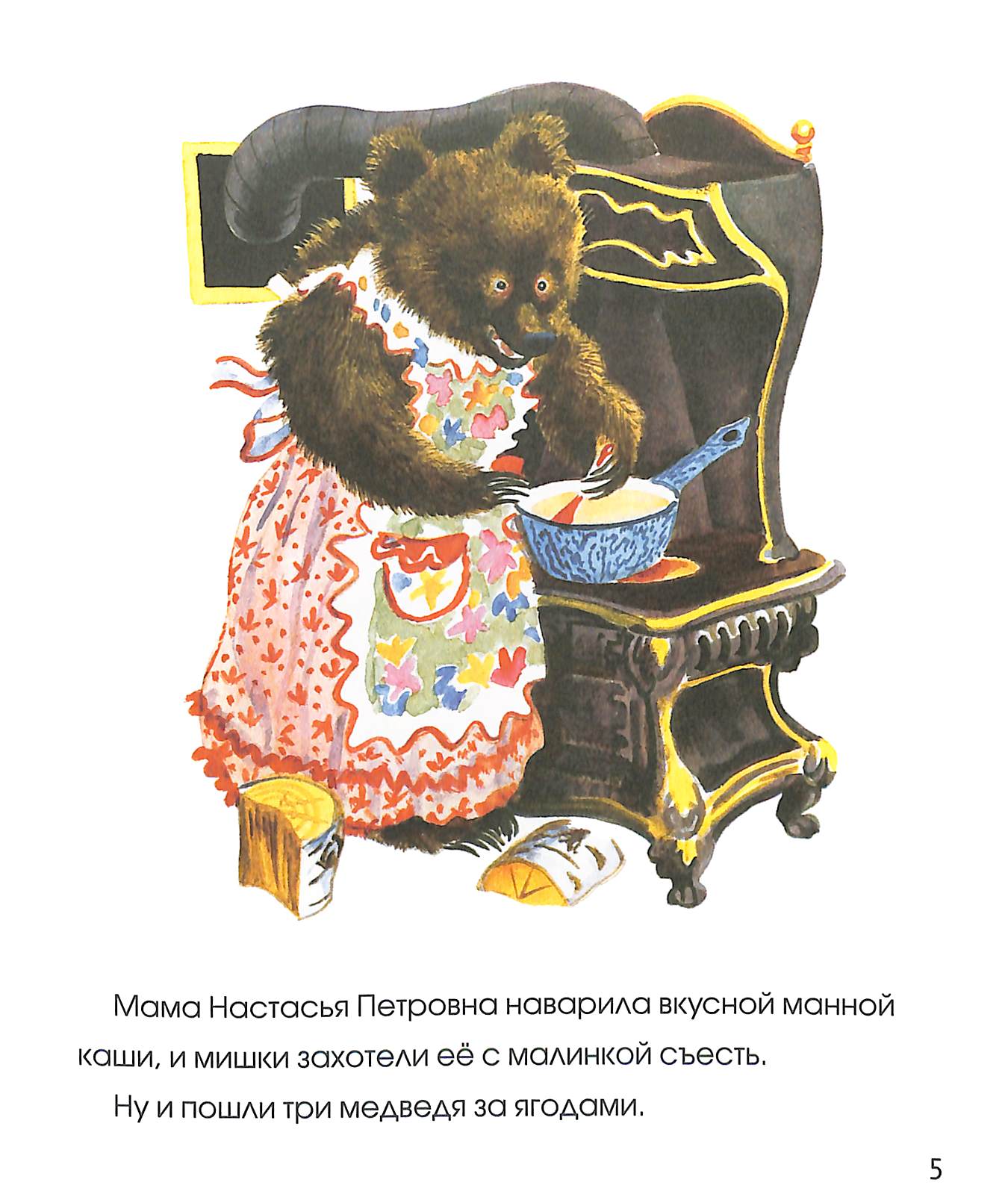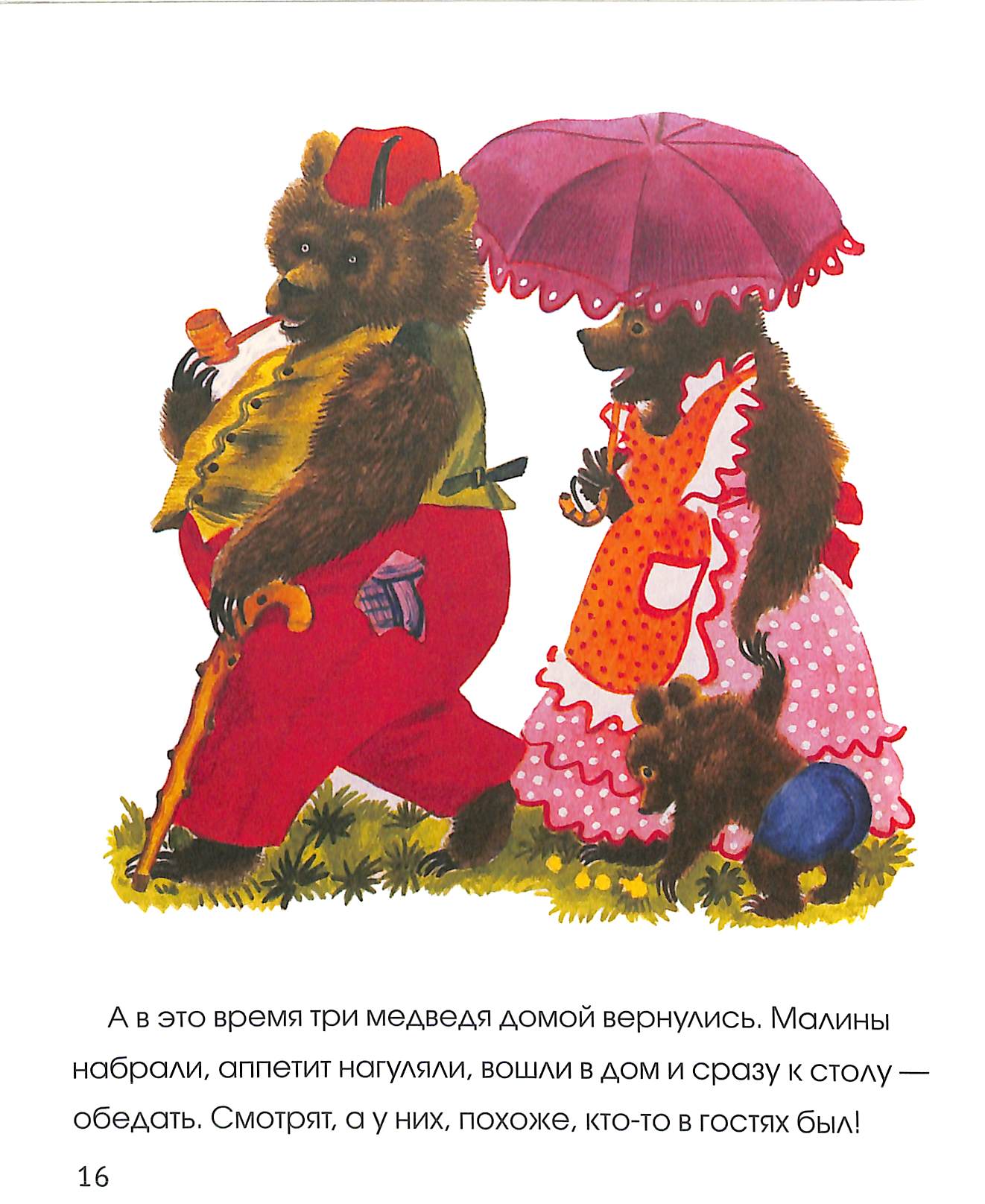 Русские иллюстраторы текста Льва Толстого обречены на пребывание в заколдованном круге. Медведи у них — всегда крестьяне: бедные или богатые, социализированные или дикие, обуржуазившиеся или опростившиеся. Девочка — тоже всегда крестьянка, совсем голодная и неразвитая либо слегка голодная и недоразвитая. Но ведь давно уже нет тёмного русского крестьянства, никто уже не понимает, какими должны быть отношения в этой среде. Лев Толстой понимал.