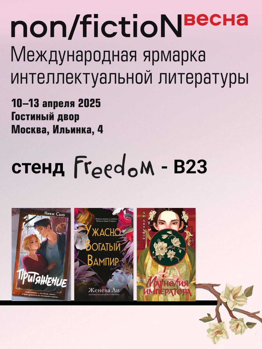 «Freedom» ждет всех ценителей Young Adult литературы на стенде В-23. Издательство порадует новинками популярных отечественных и зарубежных авторов, среди которых особенно выделяются: история запретной любви «Притяжение» Ники Сью; первый том цикла писательницы Лю Ляньцзы «Магнолия императора» (впервые на русском языке); взрывоопасная любовная история вампира и смертной девушки «Ужасно богатый вампир» от автора бестселлеров USA Today, Amazon, и New York Times Женевы Ли.
