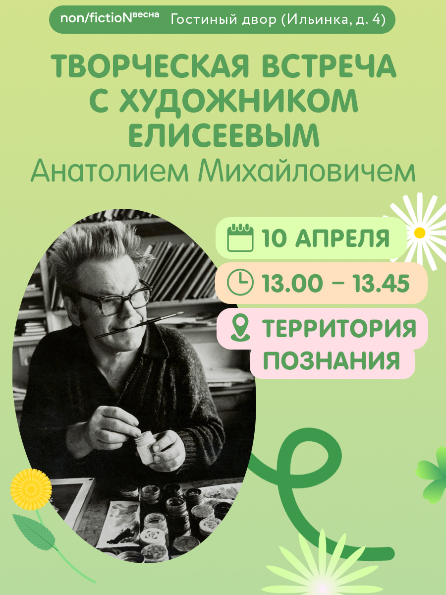 10 апреля в 13:00 состоится творческая встреча с легендой детской книжной иллюстрации Анатолием Михайловичем Елисеевым. В этом году ему исполняется 95 лет! Его иллюстрации приводят в восторг читателей по всему миру, а персонажи «Приключений капитана Врунгеля» давно стали символами детской литературы и живут в сердцах нескольких поколений. Во время встречи Анатолий Михайлович поделится своими воспоминаниями о работе над книгами, вдохновении и творческом пути. Это уникальная возможность задать вопросы мастеру и узнать секреты его мастерства.