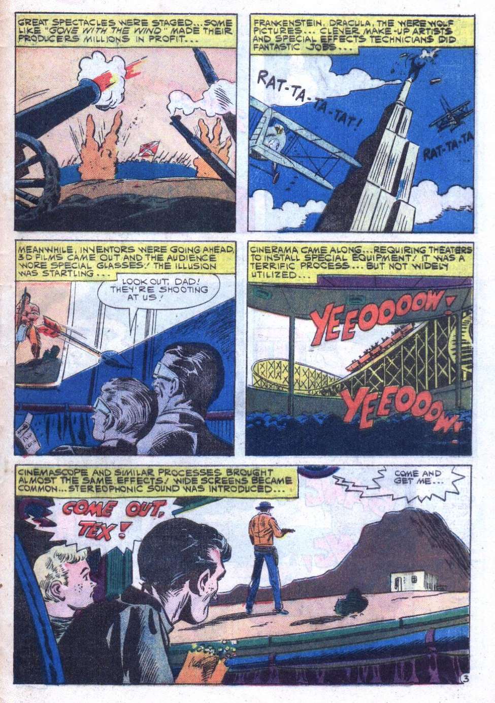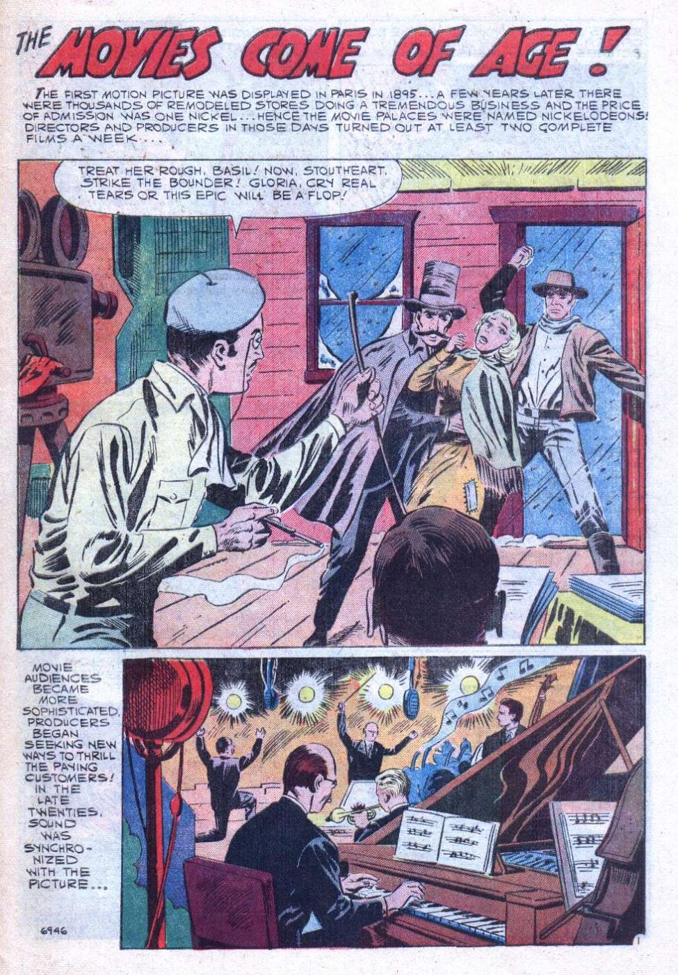 В комиксе представлено прогрессивное видение истории кино – его эволюции от «примитивных» форм до последних достижений кинотехники, таких как многоканальный звук, Cinemascope, 3D и Smell-O-Vision.