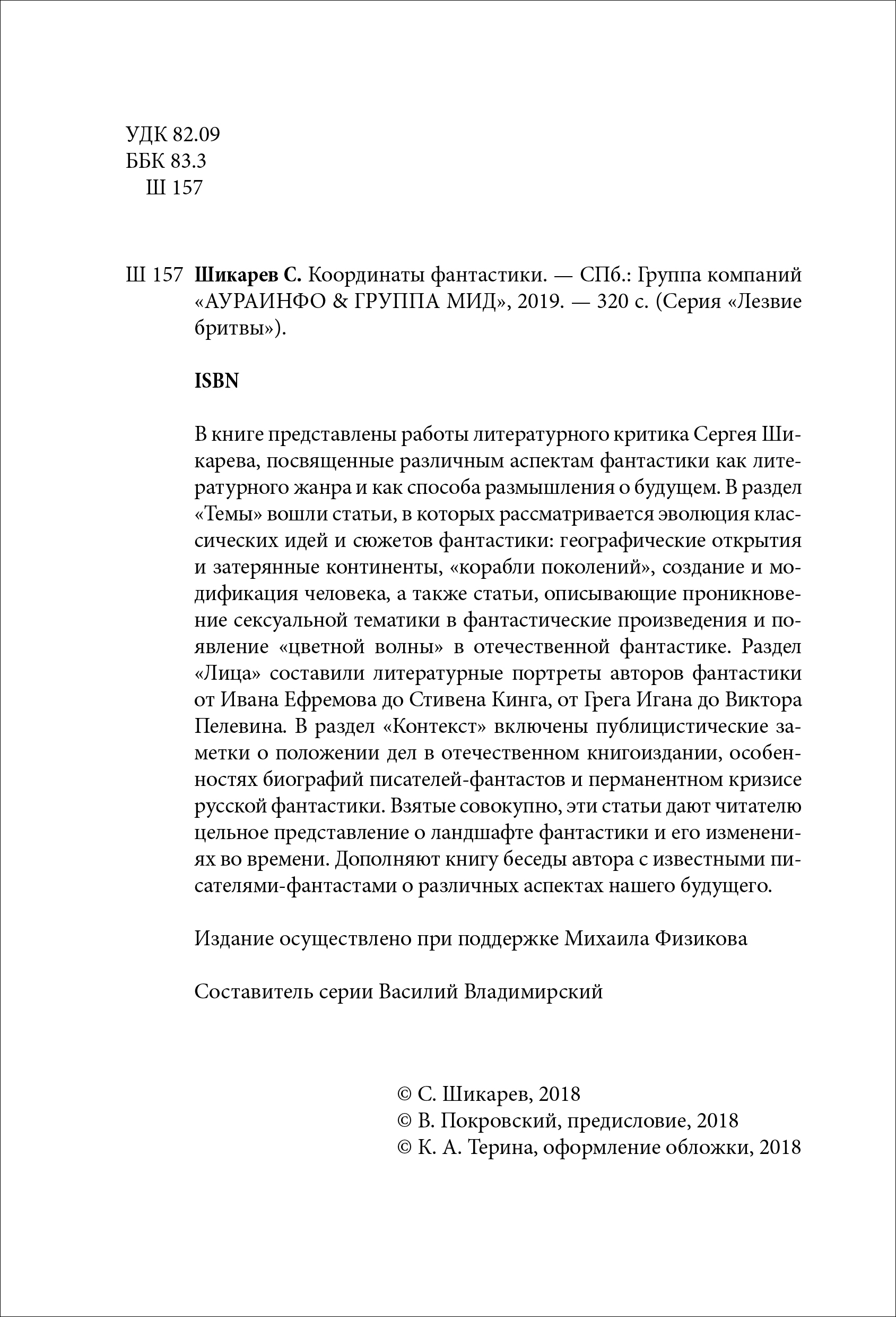 В 2019 году вместе с питерским издательством «Аураинфо & Группа МИД» запускаем новую серию – «Лезвие бритвы», авторские книги критики-публицистики о фантастике в широком смысле слова. Первые два макета («Hiperfiction»Марии Галиной и «Координаты фантастики»Сергея Шикарева) готовы, обложки готовы, на днях отправляю в типографию и держу кулачки за печатников, чтобы в январе получить тираж. Подробности – под катом. А о книжках подробнее после праздника расскажу.