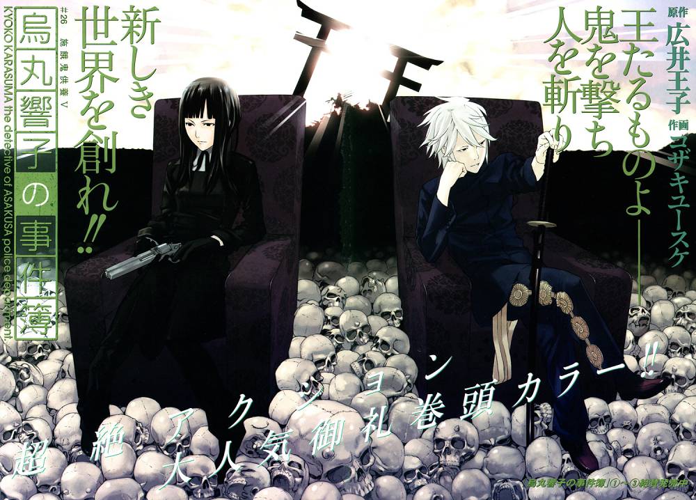 Да, вторая арка заканчивается тем, что Карасума официально считается пропавшей без вести. На самом деле она добралась до Киото и пытается найти информацию о своей семье. Мы находим её спустя полгода после исчезновения, когда и в Токио произошли серьёзные изменения. Митамуру, превысившего свои полномочия при переговорах с Тацуми Кано, продержали эти полгода за решёткой, но затем выпустили и восстановили в должности. Место премьер-министра занял Курада — тот, кто отказался выполнять условия договора с демонами. Теперь он намеревается вести войну с нечистью.