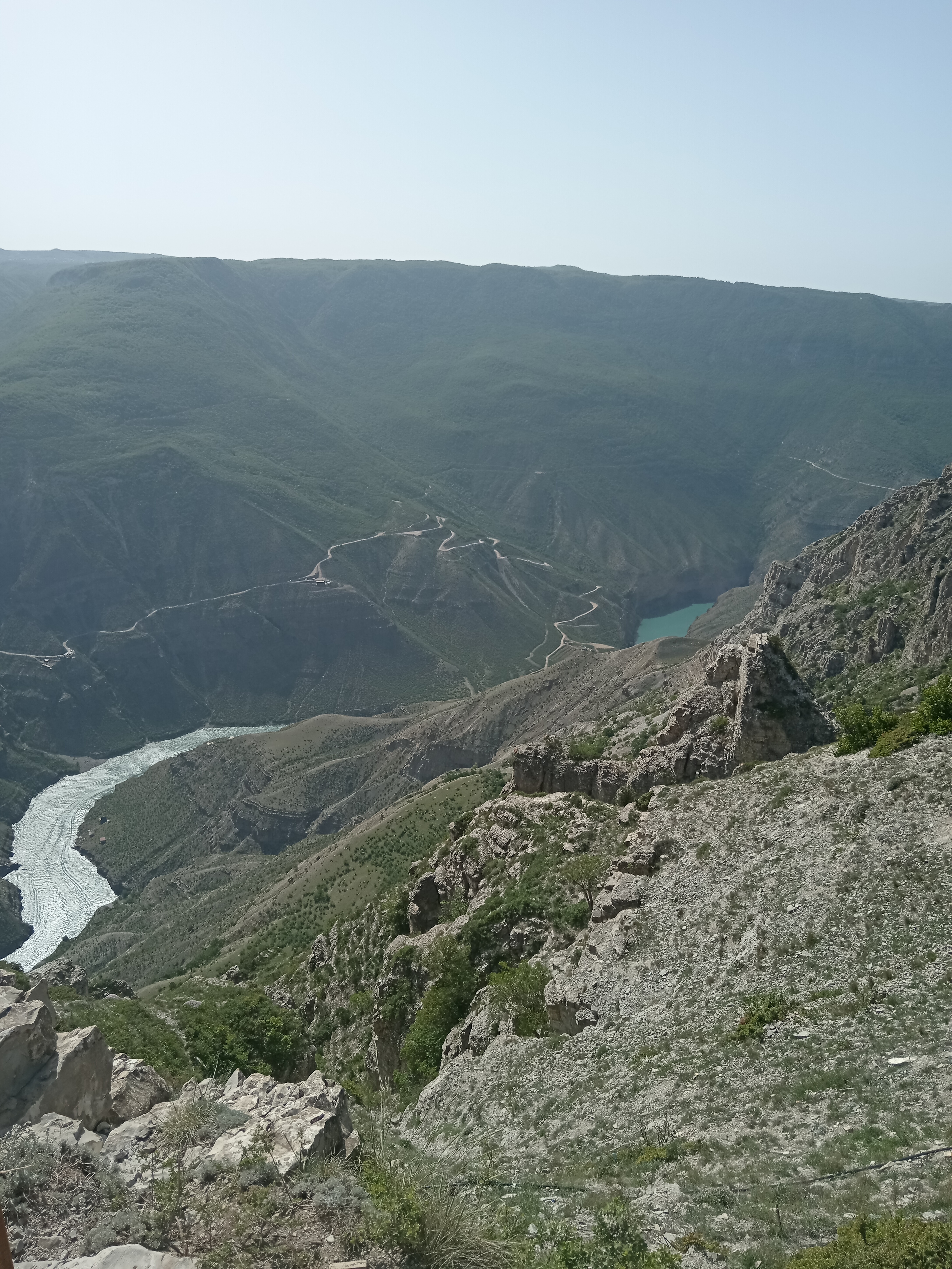 На майские праздники я вырвалась в Дагестан. Давно мечтала полюбоваться красотами, окунуться в местную колоритную этнокультуру, отпробовать местные блюда)). Тур был тяжеловат, так как передвигаться пришлось на автобусе, но бегло познакомиться с регионом вполне удалось)). Делюсь красотой и впечатлениями . Путешествие началось в окрестностях Махачкалы с завтрака\обеда с потрясающим видом на реку Сулак.