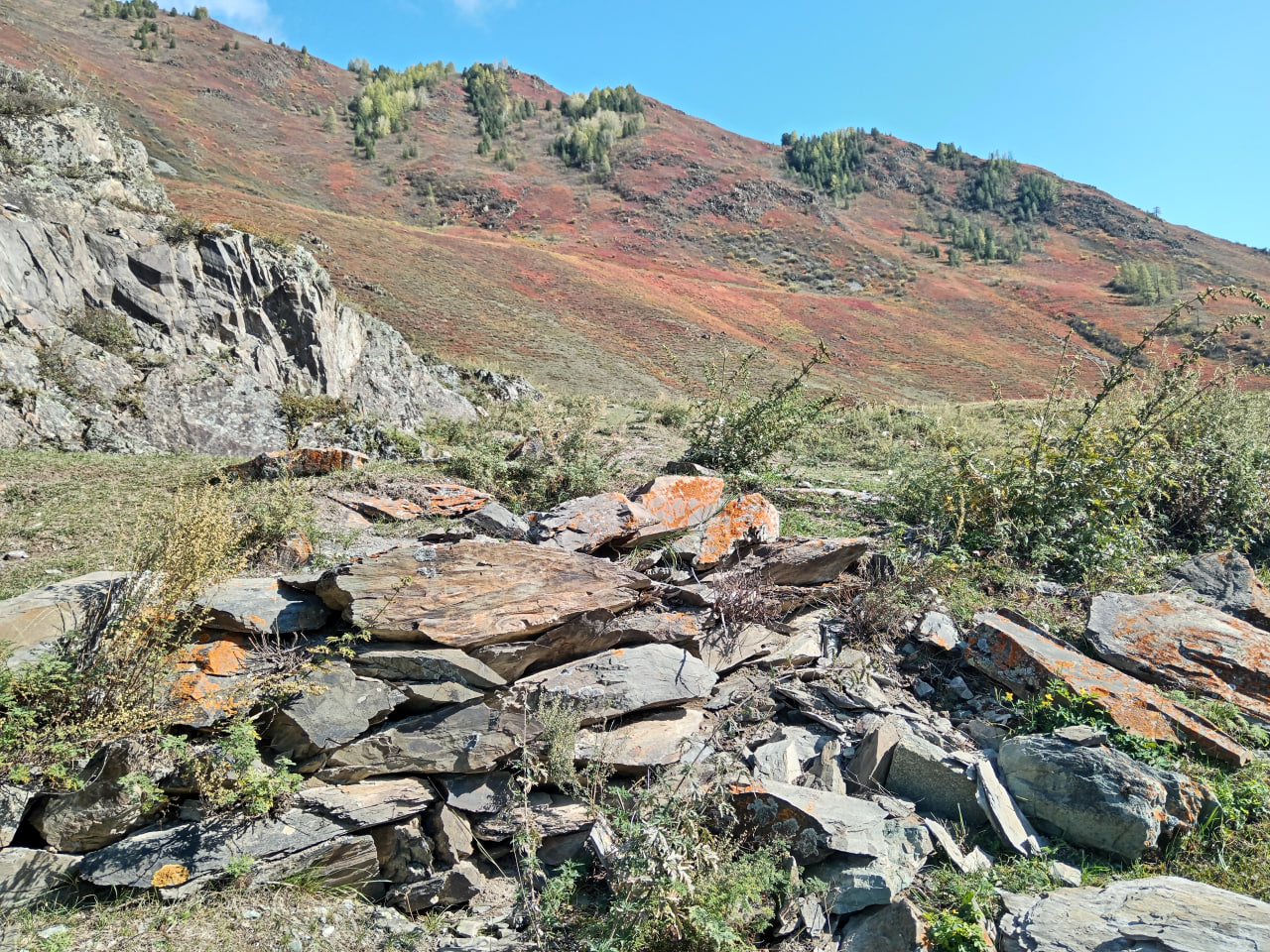 На обратном пути мы заехали на древнее святилище "Адар-Кайа" с многочисленными петроглифами на скалах, Чуйским оленным камнем, курганами. Возраст артефактов — 2500 лет.