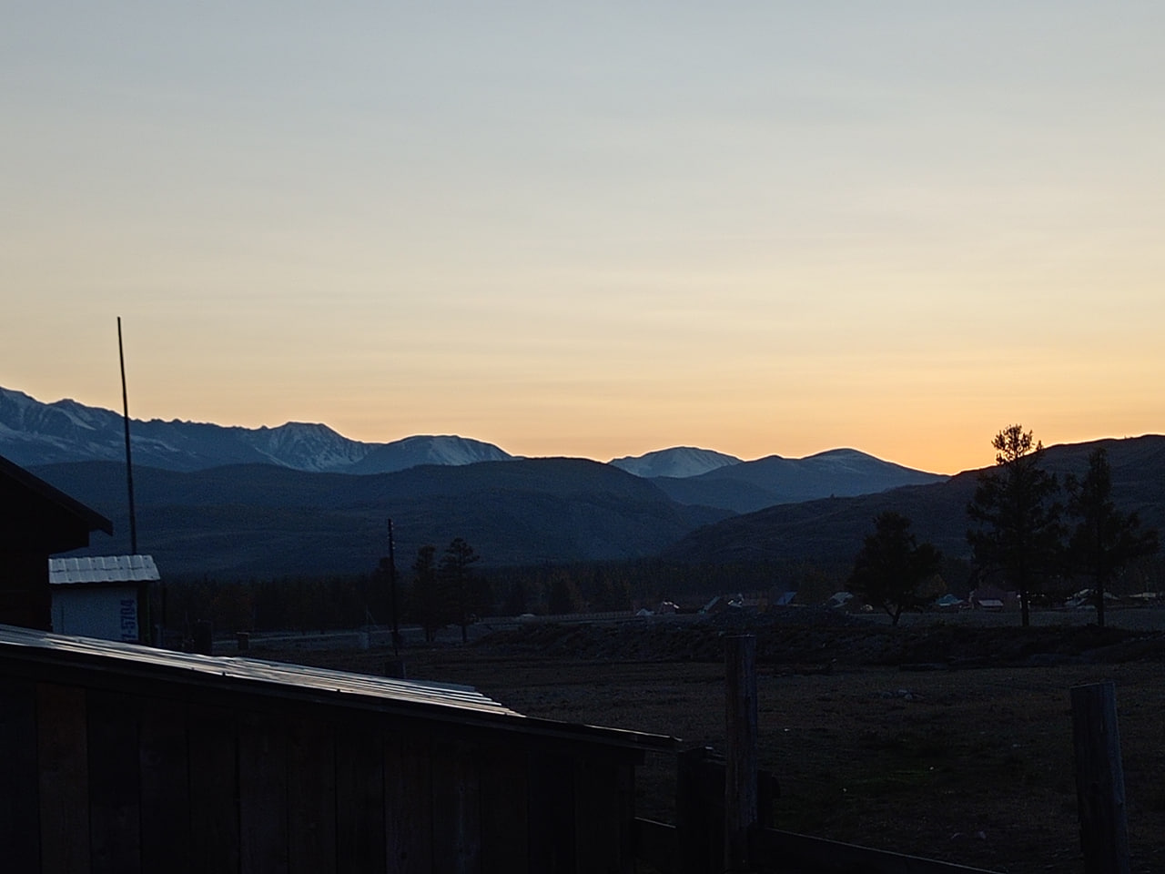 Закат я встречала уже в курайских степях с видами на белоснежные хребты. Впечатляющее зрелище. А ночью ещё было полнолуние. К сожалению, моя техника не потянула запечатлеть всю красоту.