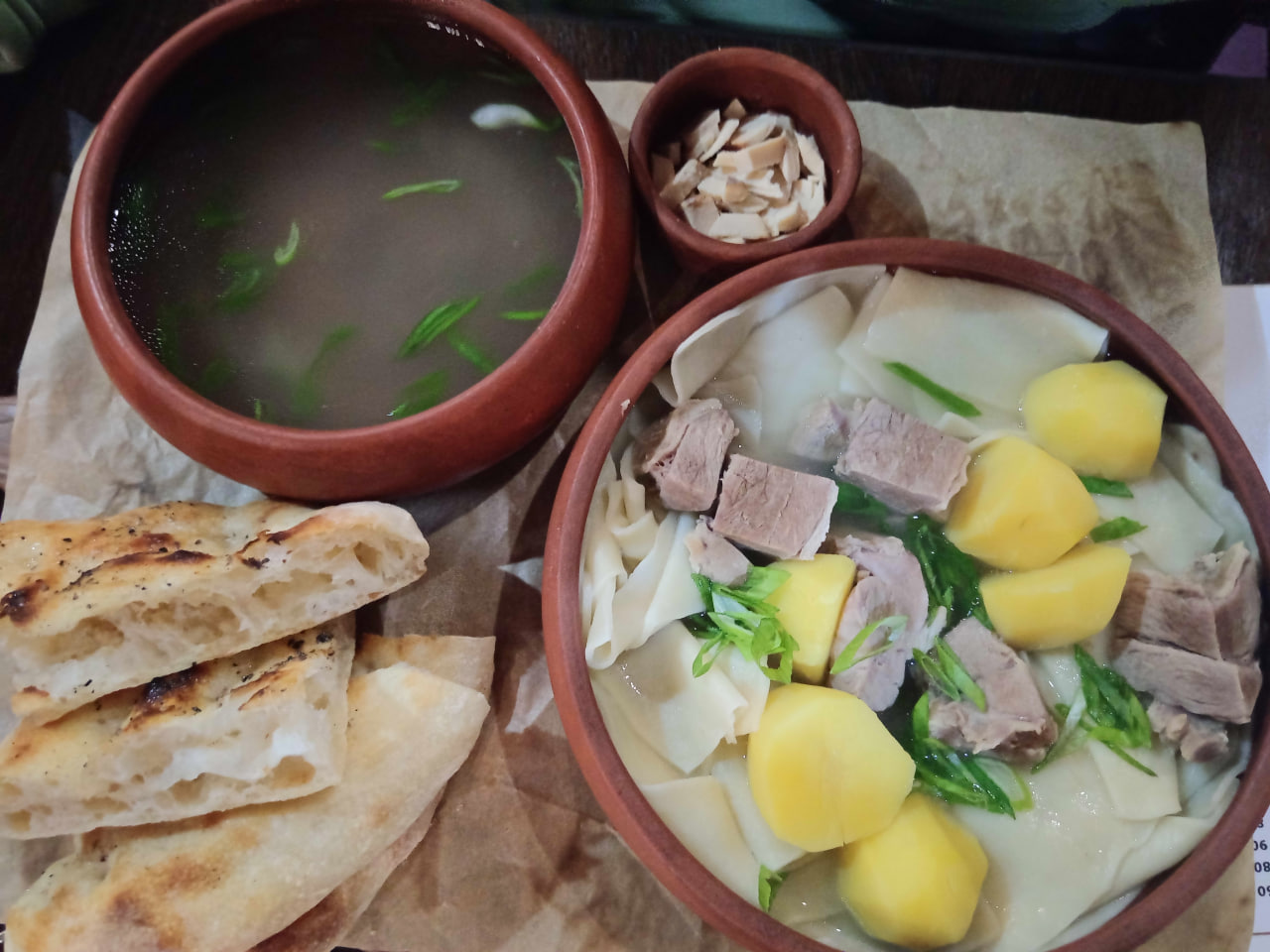 Хинкал и абрикосовая каша с урбечем. И посмотрели производство самого урбеча)).