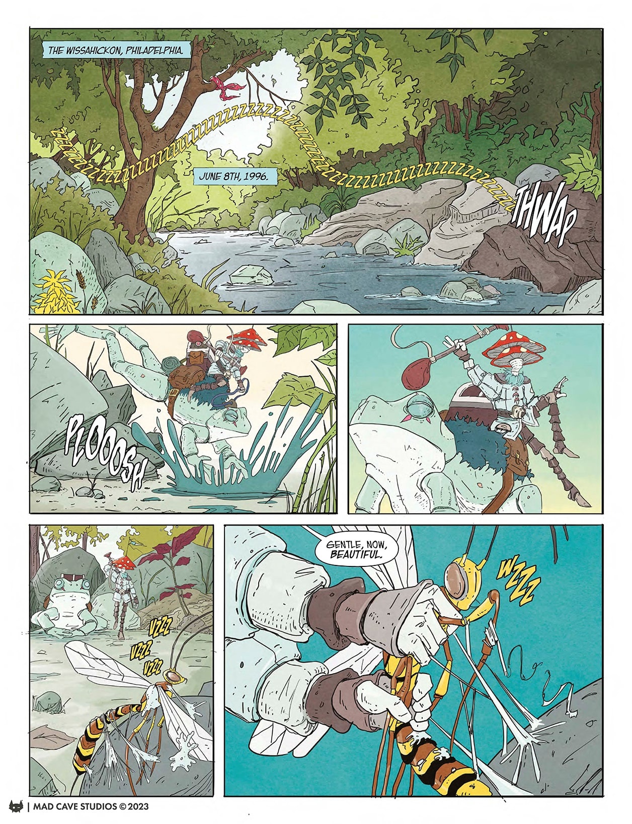 В конце хотим сказать несколько слов об авторе комикса. Оливер Блай – писатель, комиксист и мультипликатор из Филадельфии, получивший ряд наград, в том числе премию Расса Мэннига в 2024 году. Он любит стрелять из лука, ходить за грибами и в целом интересуется природой. «Рыцарь-гриб» – его дебютный графический роман.