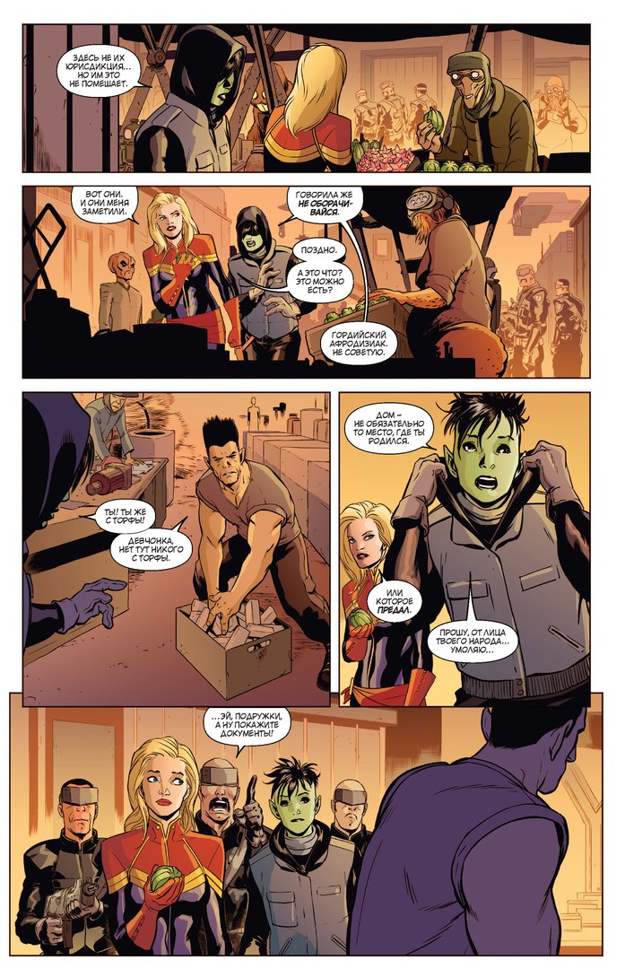 С недавних пор Кэрол Дэнверс осела на Земле, но когда на нашу планету падает спасательная капсула с загадочной инопланетной девочкой, Капитан Марвел принимает судьбоносное решение — вернуться в космос! Ей предстоит схватка с силами Галактического Альянса и шпионами коварных спартанцев. К счастью, она будет не одна, ведь на помощь к ней придут не только новые друзья, но и старые знакомые из Стражей Галактики!