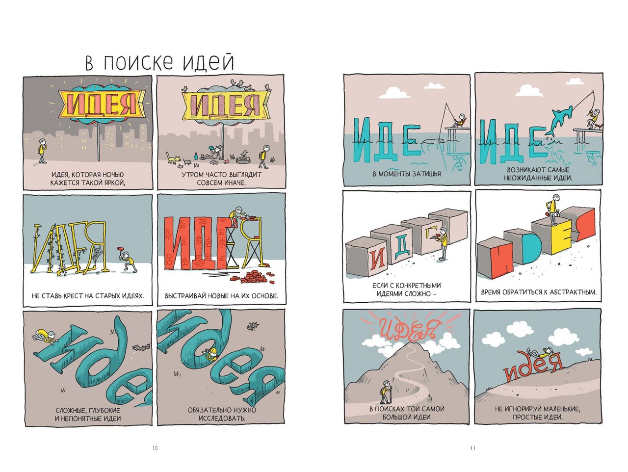 Аннотация: Как выглядят идеи? Откуда они берутся? Как ухватить мысль за хвост и заставить себя творить?.. А также — как правильно биться о стену, как выжить фрилансеру, что делать, если одна дверь закрылась, а другая не открывается, как задавать вопросы, чтобы получить неожиданный ответ, и десятки других тем с юмором, самоиронией и легкостью раскрывает Грант Снайдер в своих коротких комиксах. Если вы сталкиваетесь с фрустрацией и прокрастинацией, ищете свою музу и жаждете творческого пинка, не можете найти мечту или наоборот мечтаете до утра, не знаете, чем заполнить чистый лист и как справиться с отсутствием идей, — эта яркая, забавная и трогательная книга станет идеальным источником вдохновения!