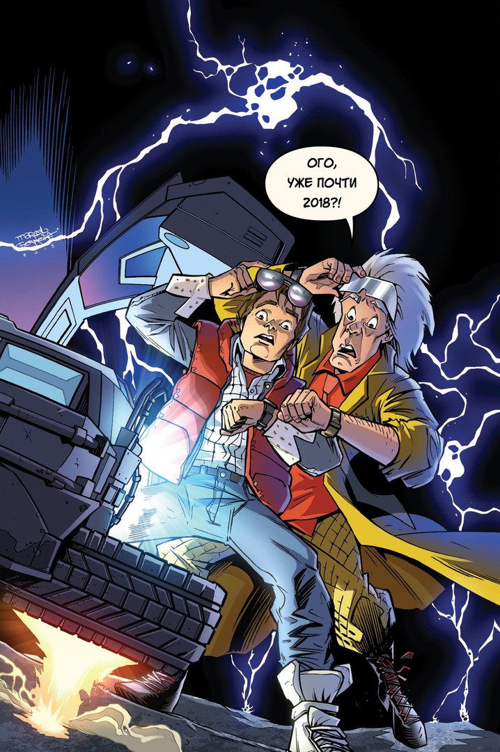 Теперь по поводу сюжета комикса: на этот раз вас ждет цельная история, которая, по сути, является прямым продолжением фильмов! Спустя полгода после событий третьей части Марти получает таинственную записку с просьбой о помощи. Док пропал! И только Марти МакФлай может помочь своему старому другу!