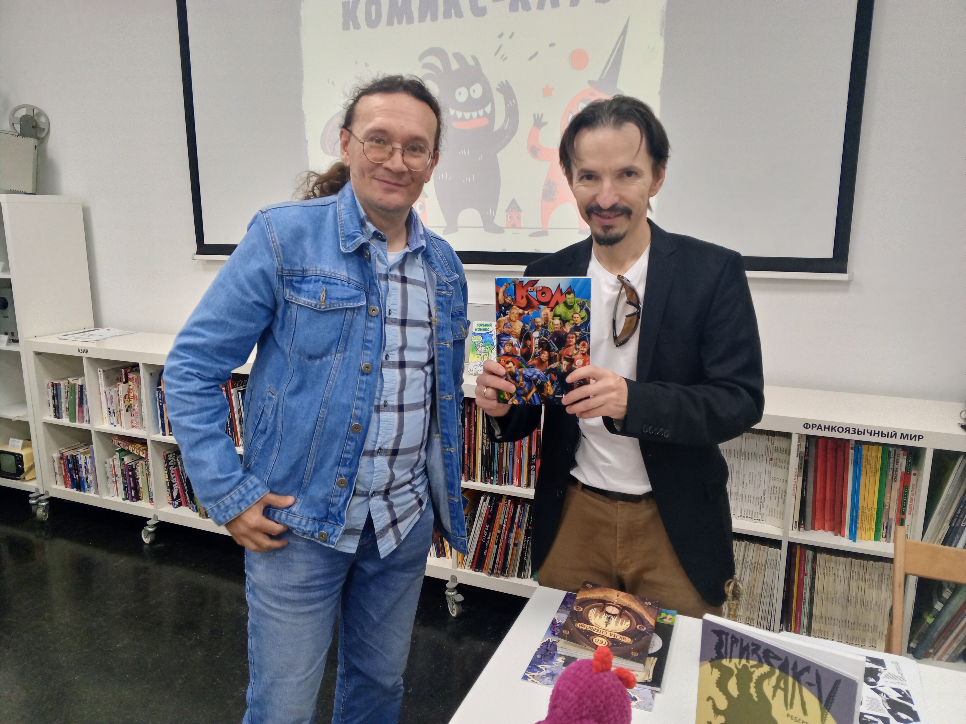 На этих двух встречах я удовольствием пообщался с Акишиным и Ворониным (на самые разные темы — от Лавкрафта до советской тяжёлой музыки, в основном, конечно, спрашивал о работе над комиксами). Приобрёл и подписал кучу комиксов. С другими звёздами тоже удалось немного побеседовать. У Дарьи Конопатовой купил малотиражный арт-бук по LLoyd`у, приквелу "Старгейзера".