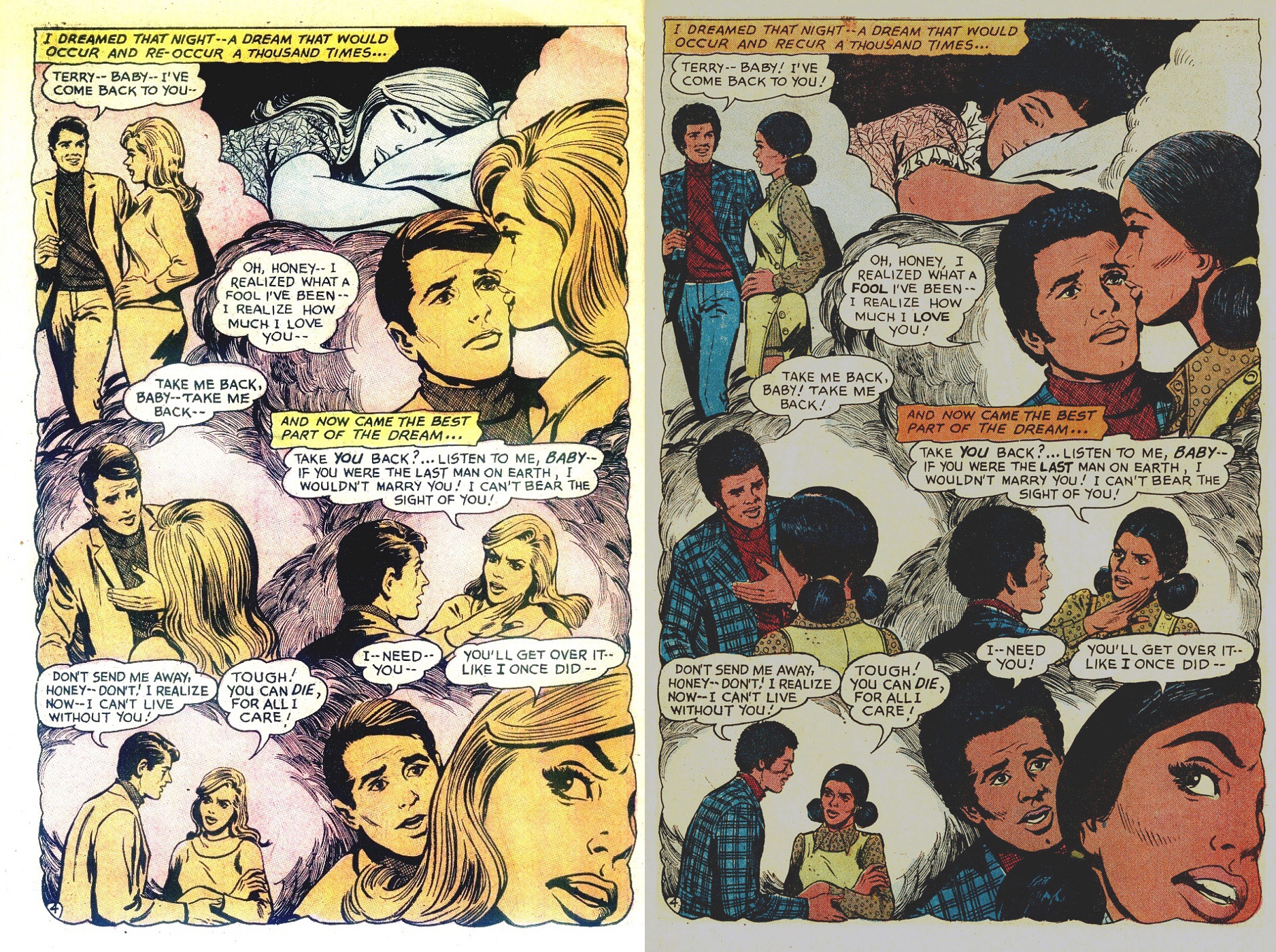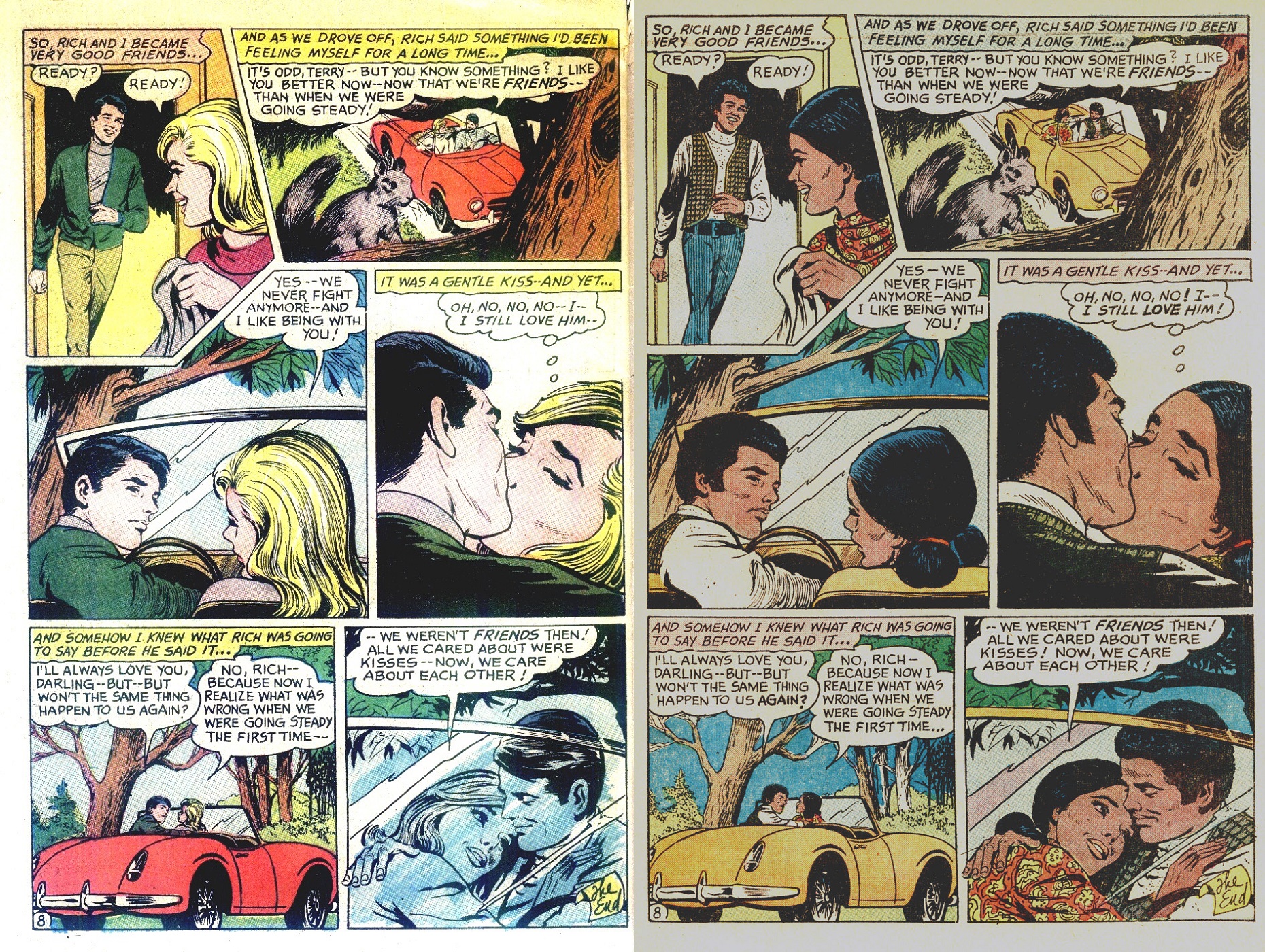 В 1970-х годах в американских романтических комиксах было довольно-таки распространено повторное использование ранее опубликованных историй, что сопровождалось усилиями по их обновлению, в основном в плане костюмов и причесок. Случалось, однако, что переделки обретали более широкий масштаб, в том числе для того, чтобы более адекватно передать этнический срез американского общества, чем это было в старых комиксах.