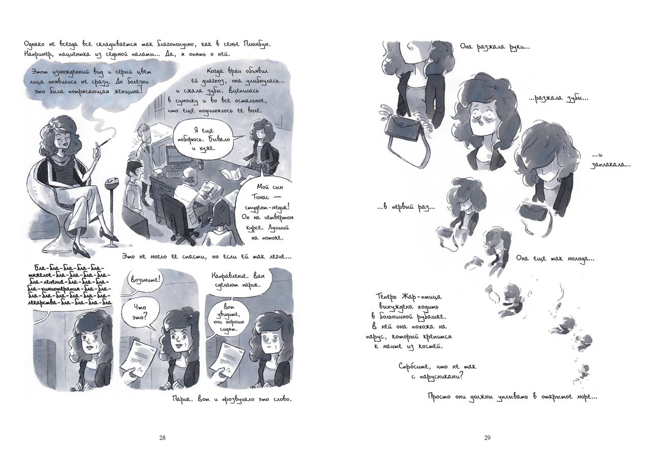 Друзья, нам снова нужна ваша помощь! В следующем году мы выпустим легкую и тонкую романтическую комедую, которая с помощью теплых стильных иллюстраций словно переносит читателей в провинциальную Францию, где все только и думают, что о любви, круассанах и светлом прошлом. Большая часть работы уже сделана, но никак не можем определиться с названием для этого чудесного комикса. Помогите нам выбрать