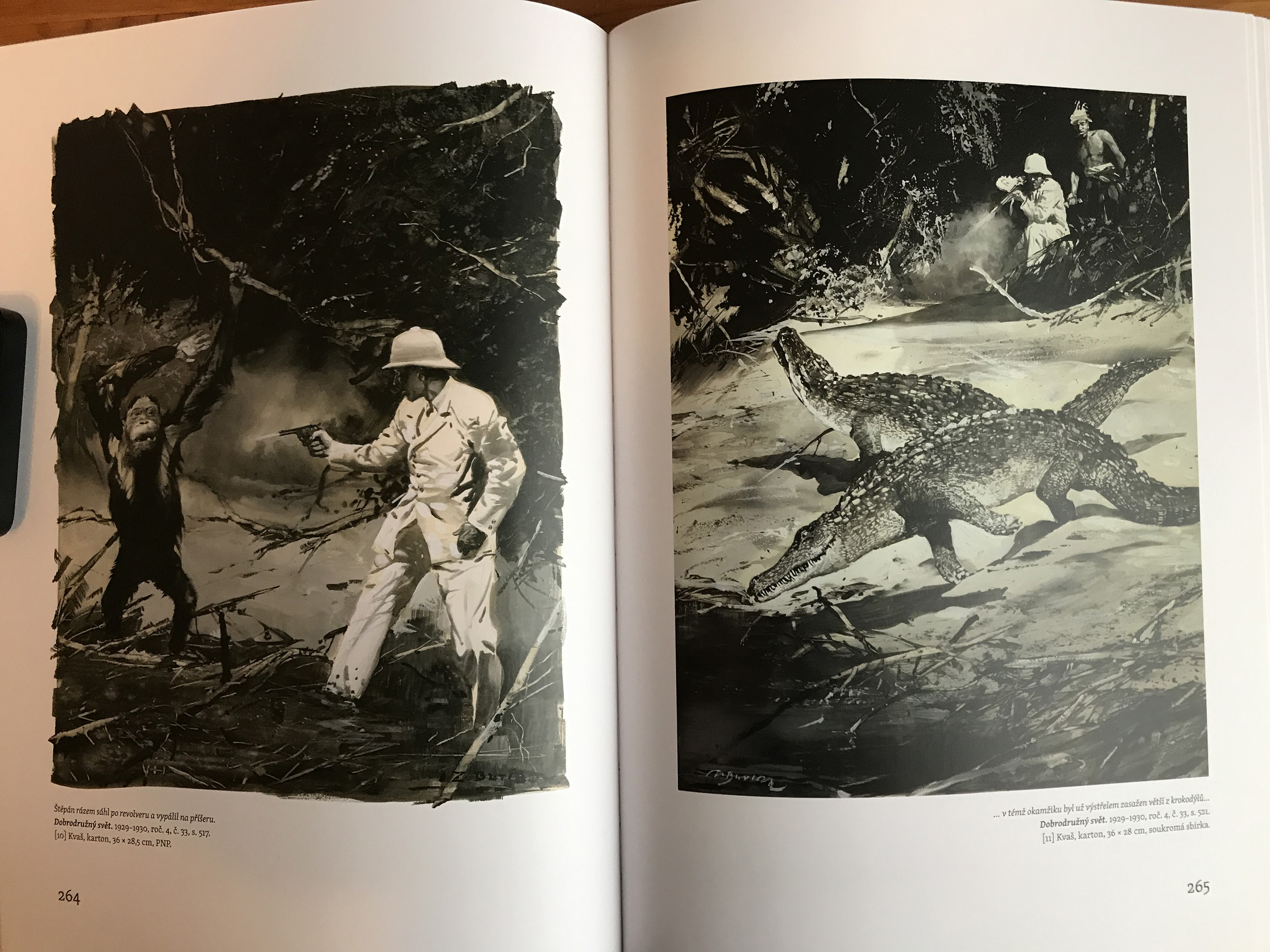 В 2018 году вышел альбом "Dobrodružný svět", в котором подробно рассказано о том периоде творчества художника, когда он плотно сотрудничал с журналом "Dobrodružný svět" ("Мир приключений"), издававшимся в 1920-1930-ые годы издателем Рихардом Вилимеком. Многие из этих иллюстраций потом были изданы в книгах, но впервые увидели свет они именно в журнале. А только что, буквально месяц назад, вышел альбом "Podivuhodný svět", в котором рассказывается о иллюстрациях Зденека Буриана к произведениям Жюля Верна. Я мимо таких вещей спокойно проходить не могу, и, конечно, приобрел первый альбом еще в прошлом году, а второй приехал ко мне буквально несколько дней назад. Обещали еще третий такой альбом, наверное, он выйдет в следующем году. Буду ждать.