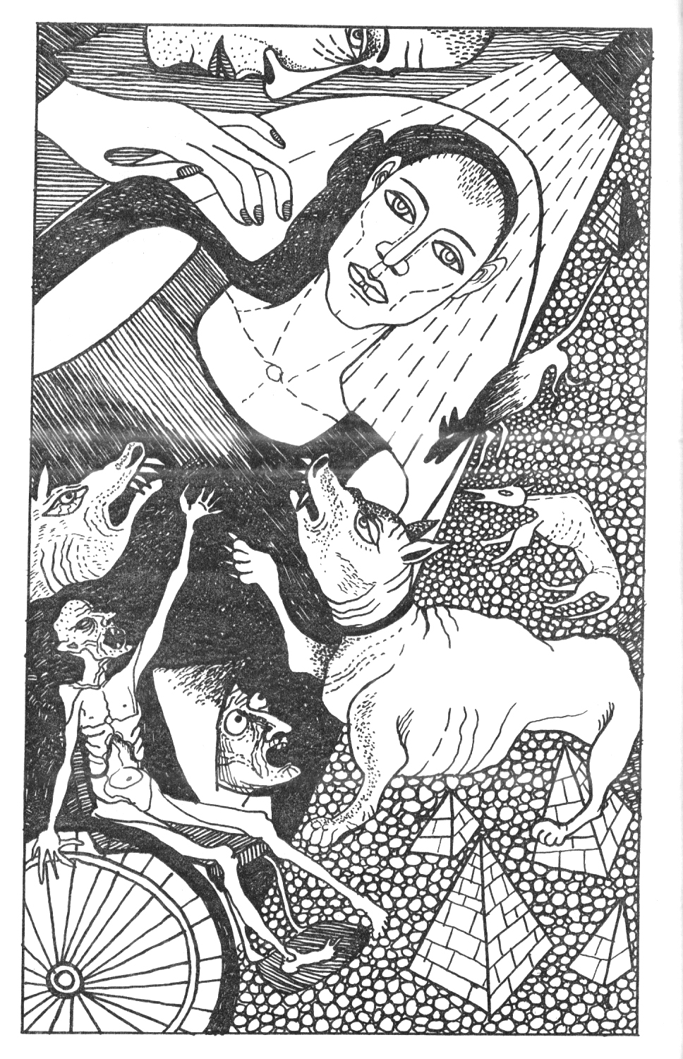 Рисунки М.Алферовой к сборнику "Ламбада": 17-19 — к повести "Ламбада", 20-21 — к маленькому роману "Возвращение с берега", 22 — к повести "Песенка тикера", 23 — к повести "Дым гремящий", 24 — к рассказу "Проклятый галактический полет"