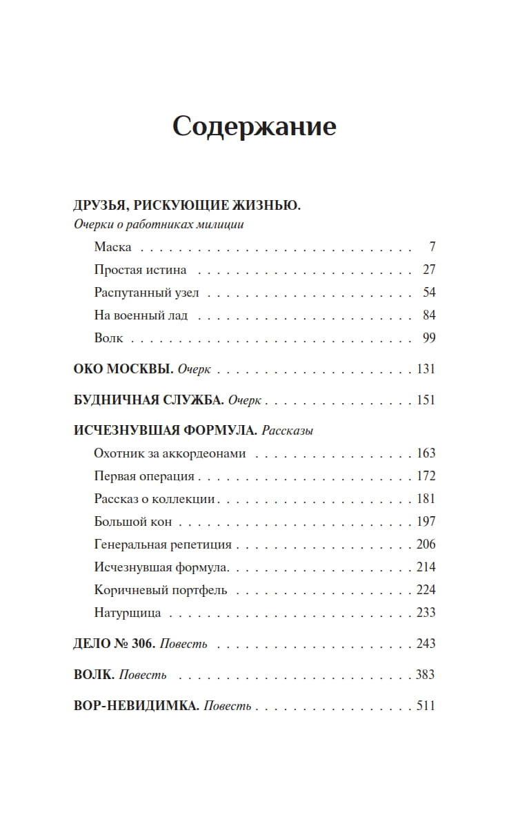 Завершают книгу давно полюбившиеся читателям повести «Дело № 306» (1949–1950; публ. 1961), «Волк» (1952–1954, публ. 1956) и «Вор-невидимка» (1962–1964; публ.1965). Все они повествуют о сотрудниках милиции, чья сложная и опасная работа позволяет сохранить законность, общественный порядок, а подчас и жизни советских людей.