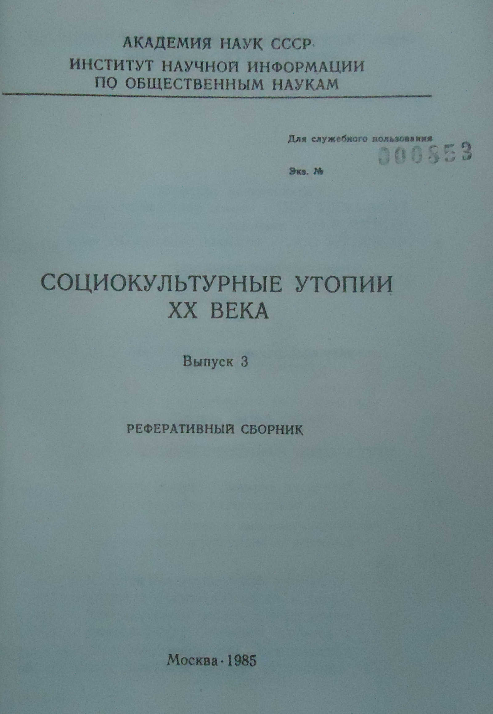 - Л.Л. Лисюткина. Современная дискуссия об утопии в ФРГ (Обзор) (статья), с. 15-38