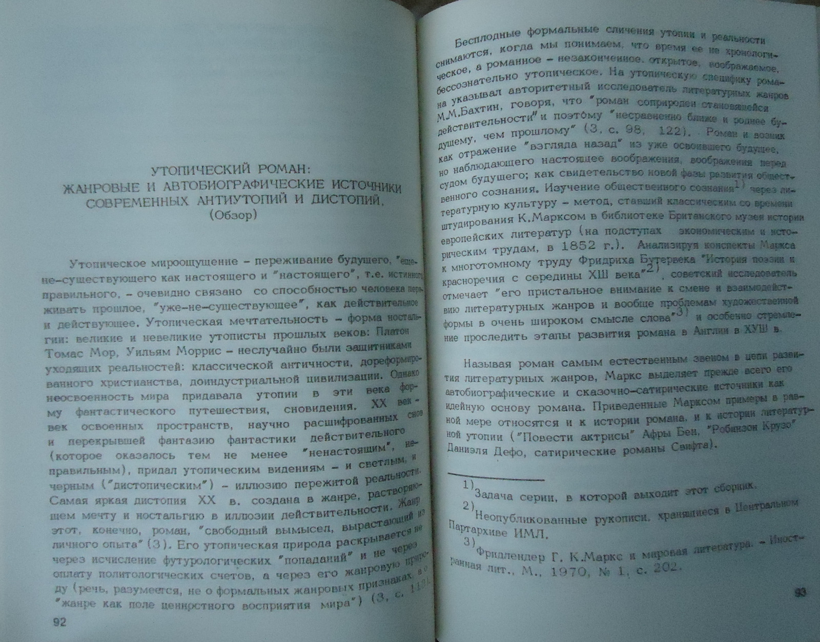- В.А. Чаликова. Утопический роман: жанровые и автобиографические источники современных антиутопий и дистопий (Обзор) (статья), с. 92-166