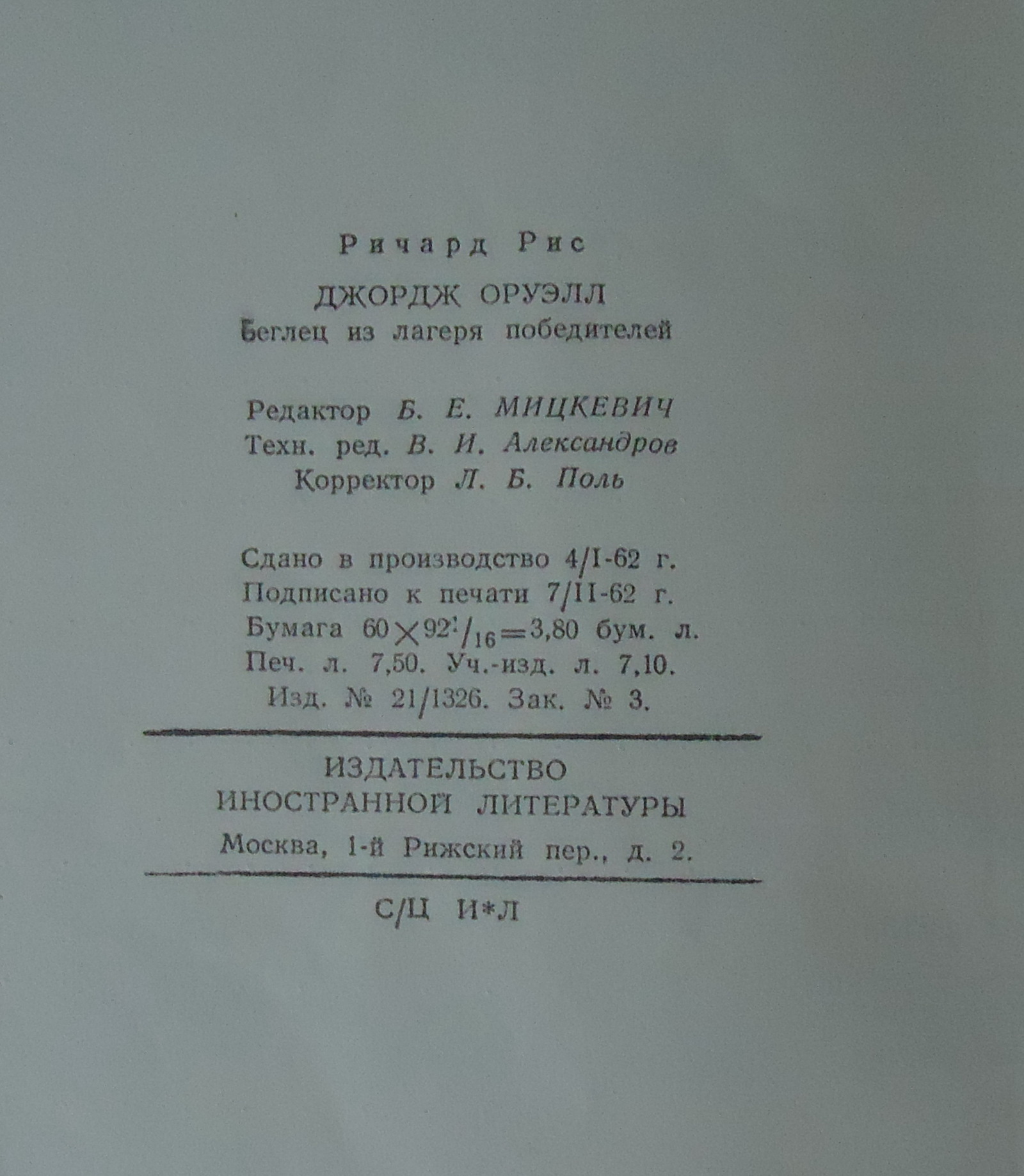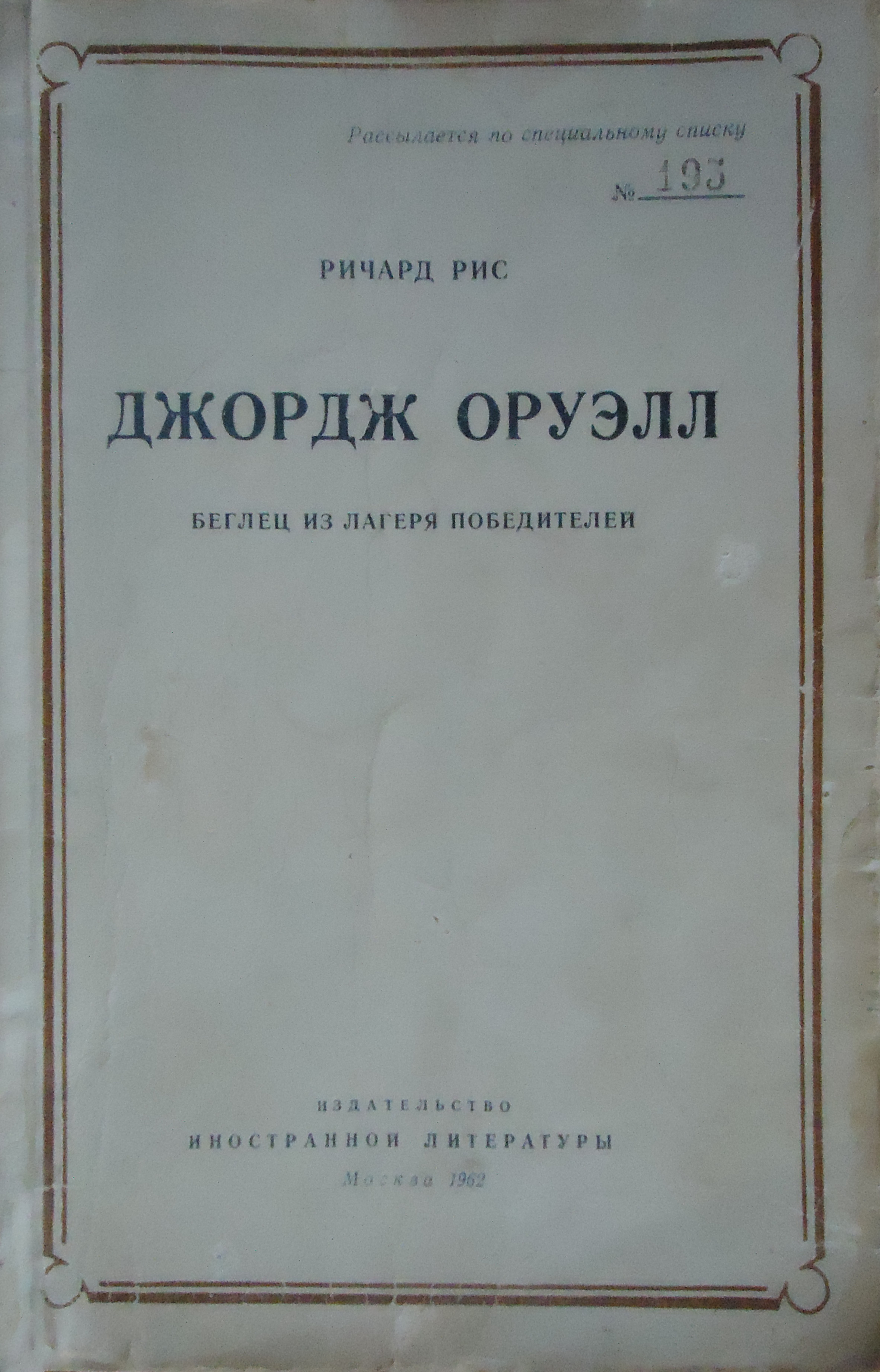 - Ричард Рис. Джордж Оруэлл: Беглец из лагеря победителей (монография)