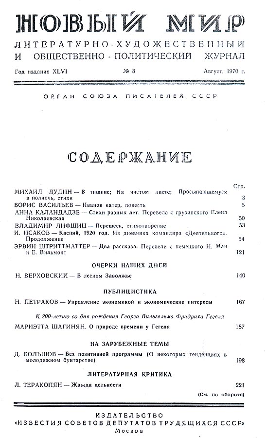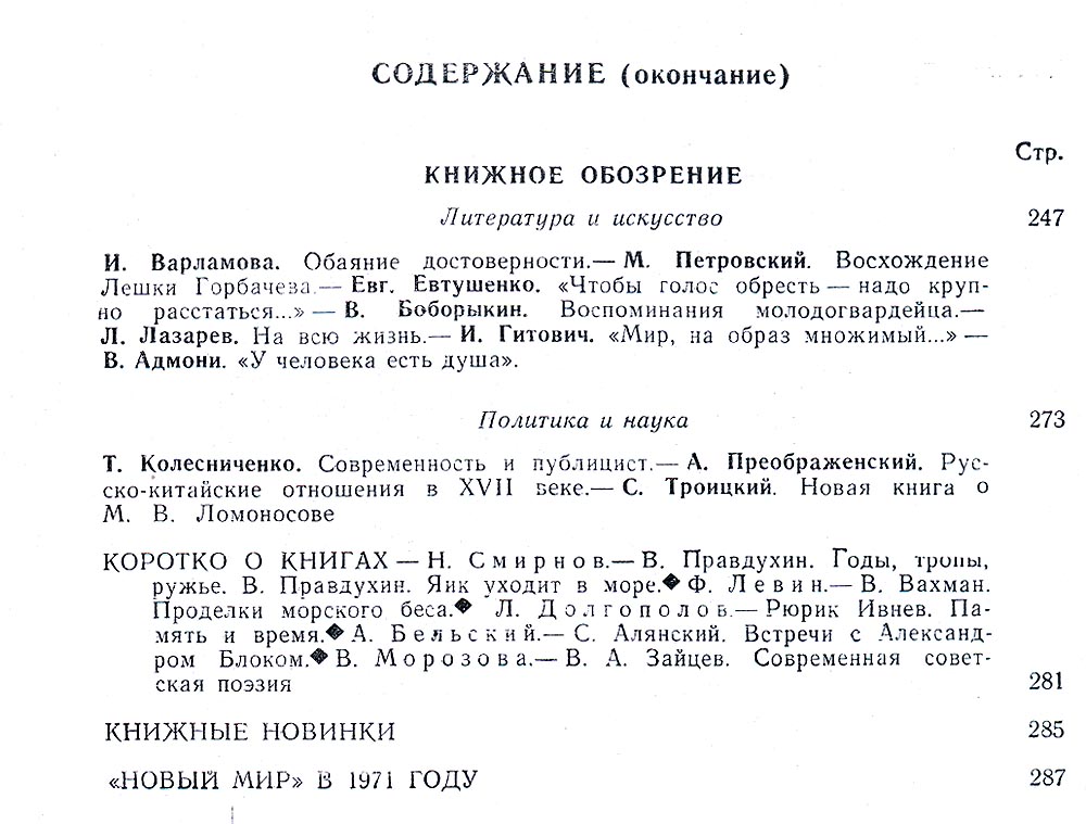 - М. Петровский. Восхождение Лёшки Горбачёва (рецензия на роман Н. Дубова «Горе одному»), стр. 252-