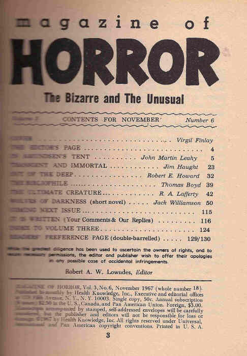«Magazine of Horror, November 1967»