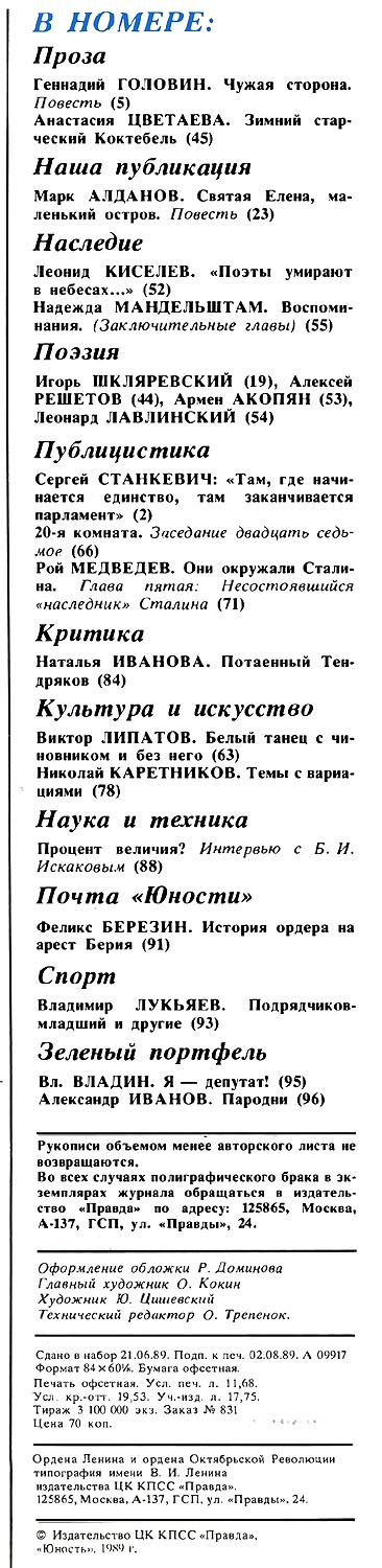 - Геннадий Головин. Чужая сторона (начало повести, иллюстрации М. Пинкисевич), стр. 5-18