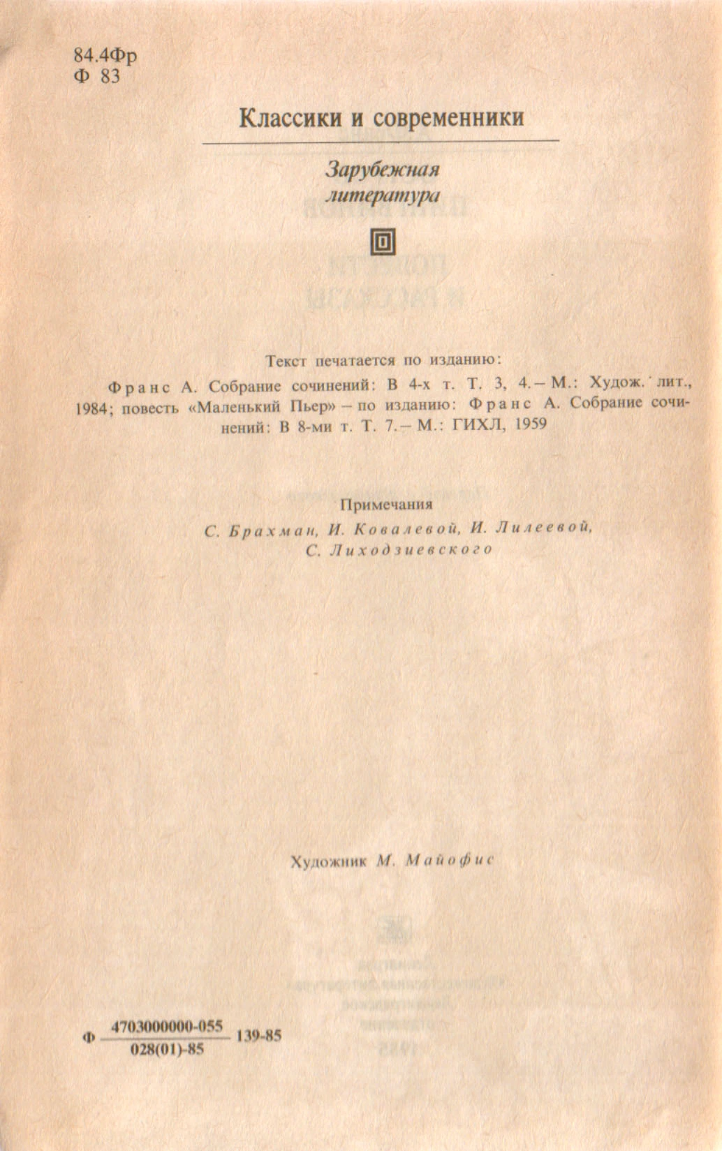 - Анатоль Франс. Маленький Пьер (повесть, перевод Д. Лившиц), стр. 176-292