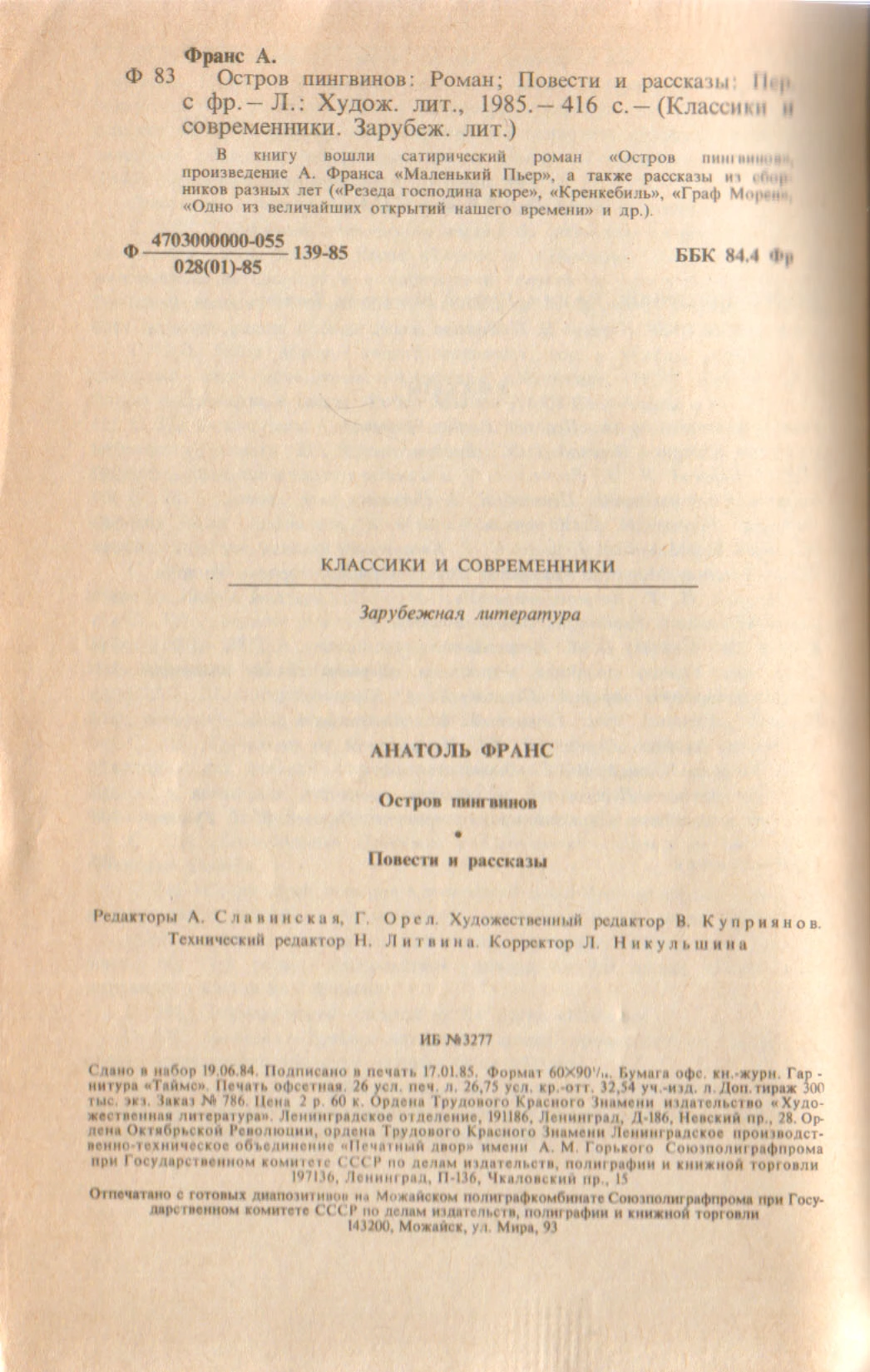 1985 г. — доп. тираж 300000 экз. Подписано в печать 17.01.85. Заказ №786.