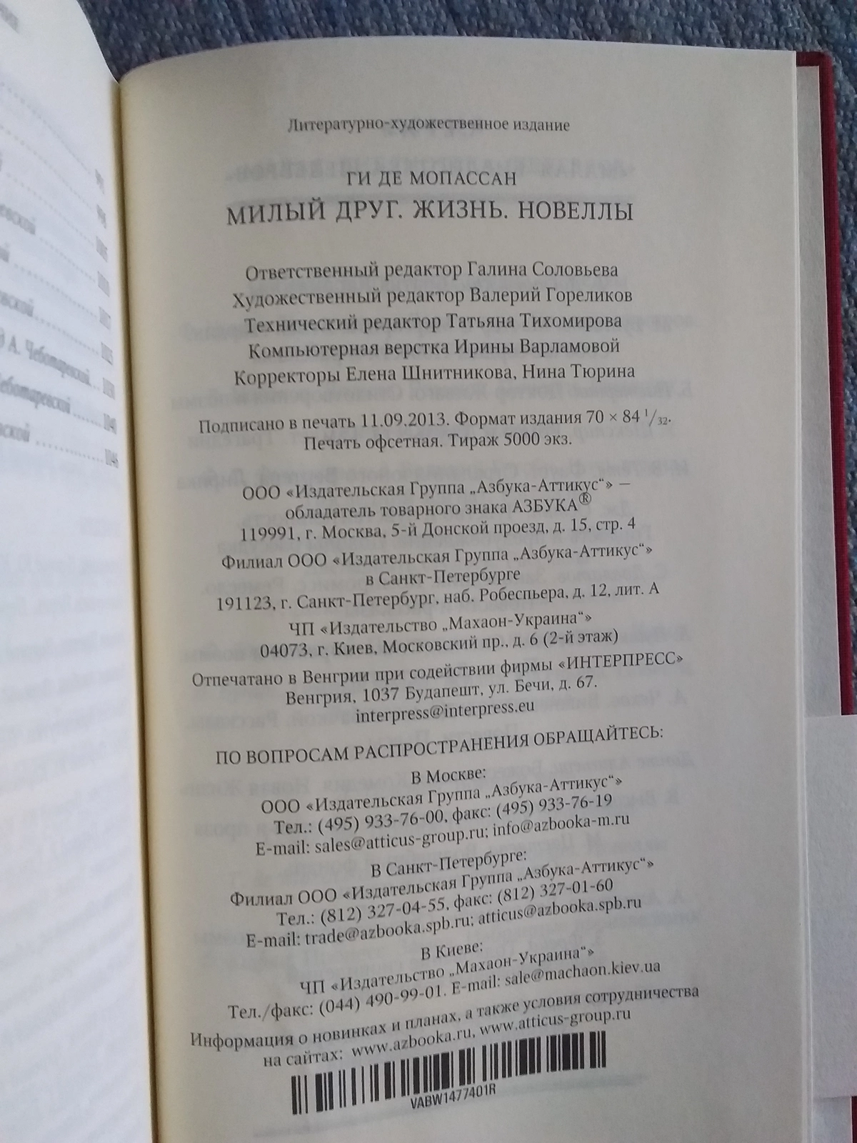 - Ги де Мопассан. Милый друг (роман, перевод Н. Любимова), стр. 5-420