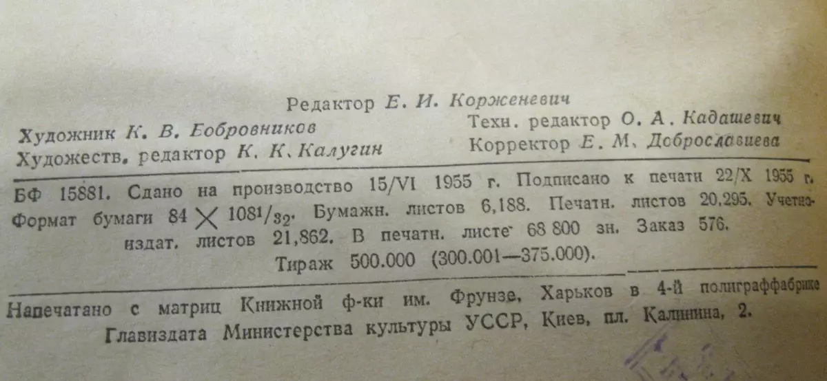 Примечание: Подписано в печать 22.10.1955. Заказ № 576.