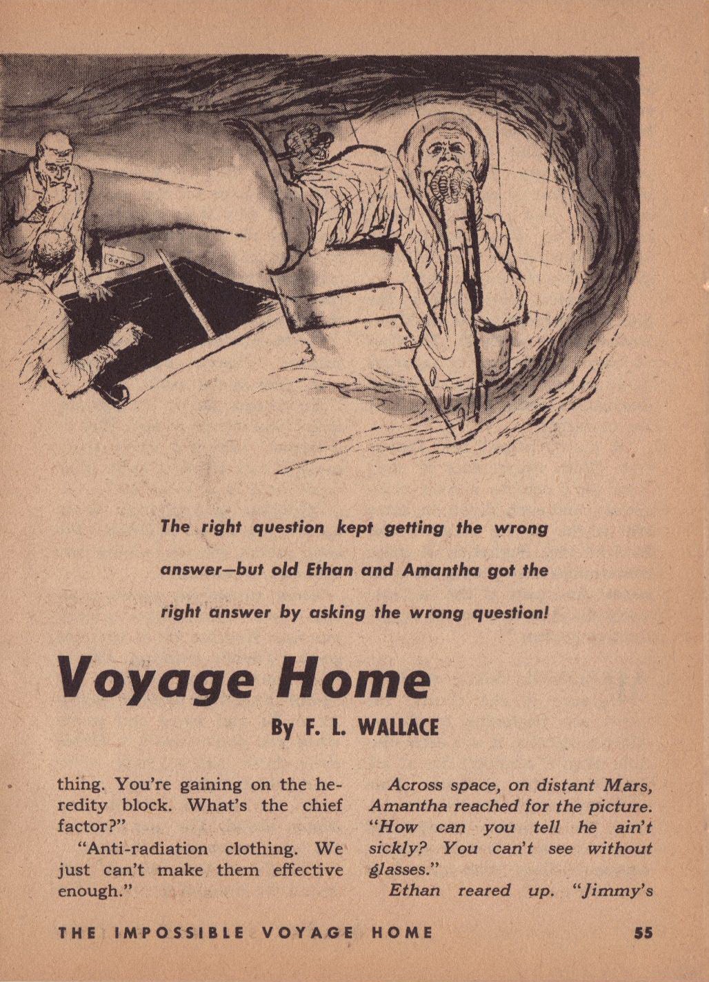 - F. L. Wallace. The Impossible Voyage Home (рассказ, иллюстрации Д. Френсиса), p. 54-77