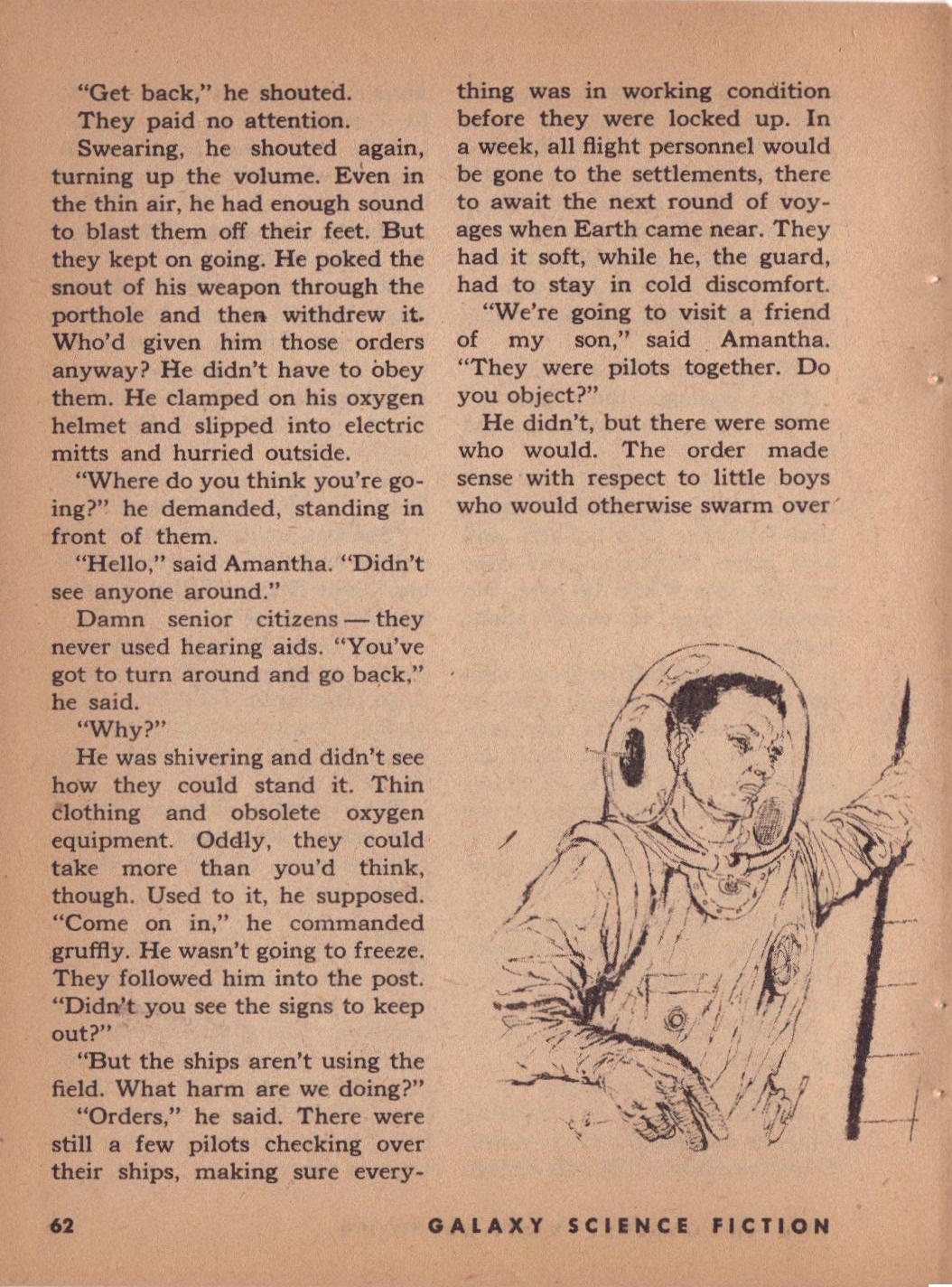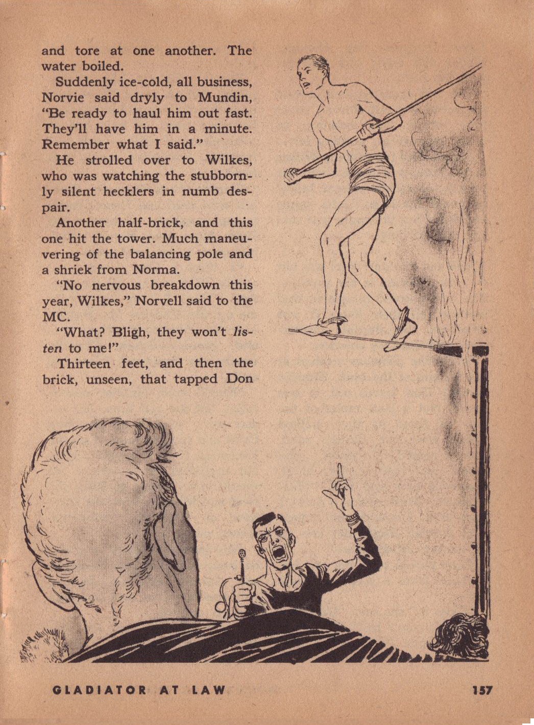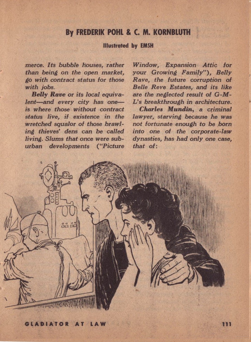 - Frederik Pohl, C. M. Kornbluth. Gladiator at Law (окончание романа, иллюстрации Э. Эмшвиллера), p. 110-159