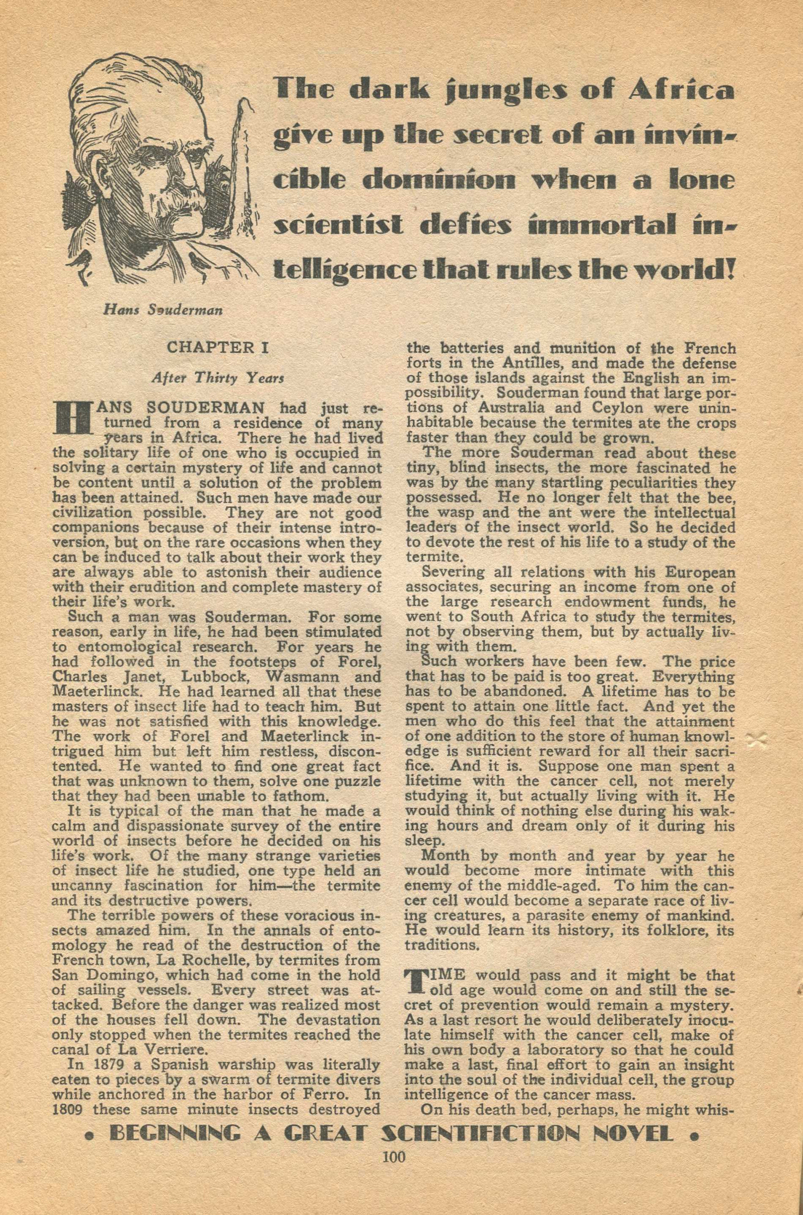 - Dr. David H. Keller. The Human Termites (начало романа, иллюстрации Ф.Р. Пауля), p. 99-115
