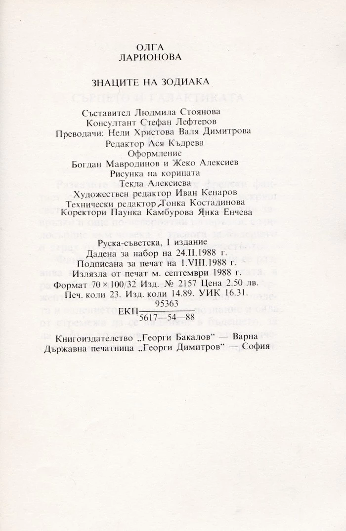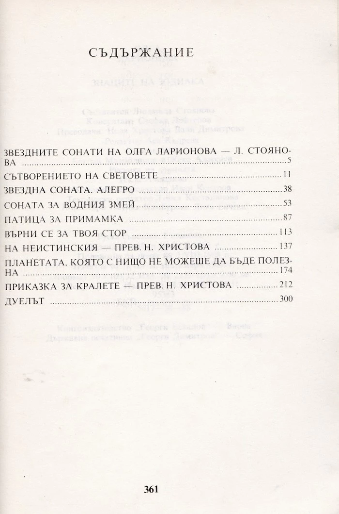 - Олга Ларионова. Звездна соната. Алегро (рассказ, перевод В. Димитровой)