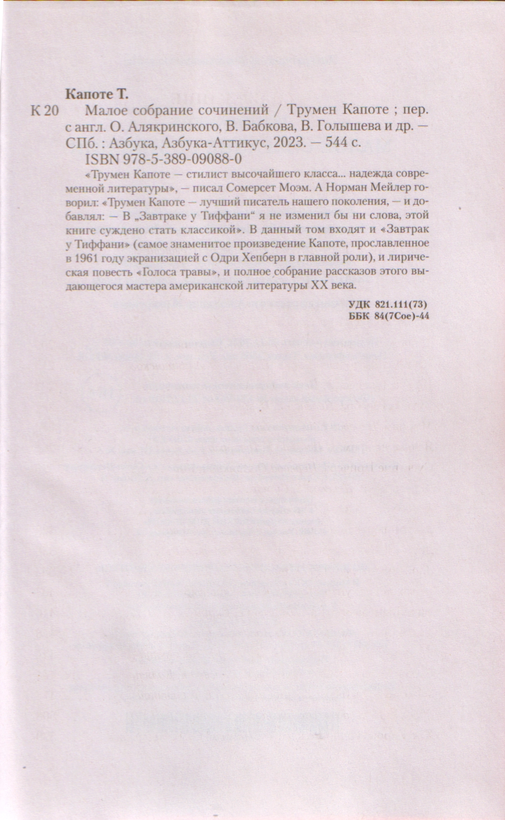 - Трумен Капоте. Выгодная покупка (рассказ, перевод О. Алякринского), стр. 407-415